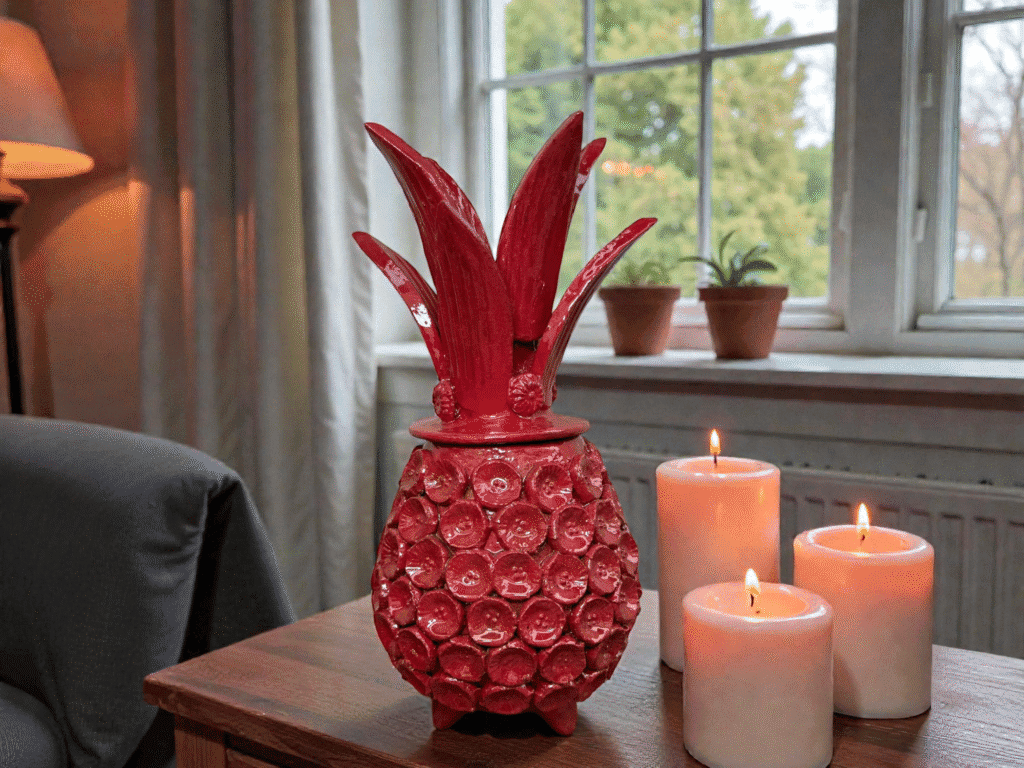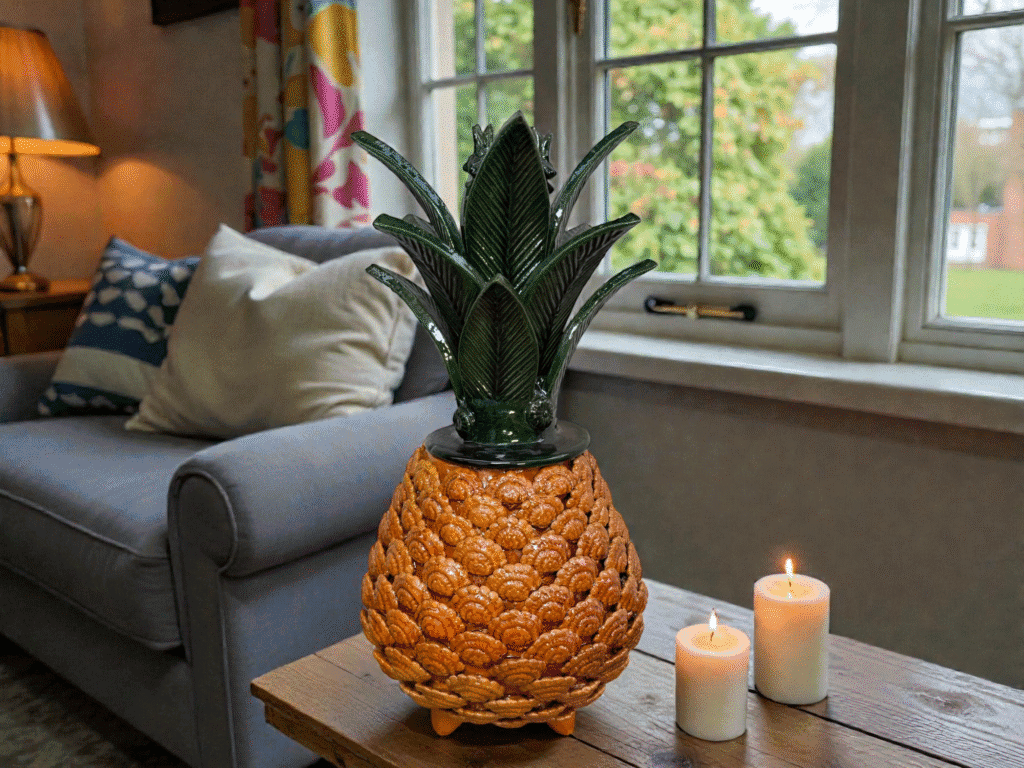 For this reason, glazed ceramic pineapples are commonly placed in entryways, dining rooms, and living spaces as symbols of warmth and good fortune.