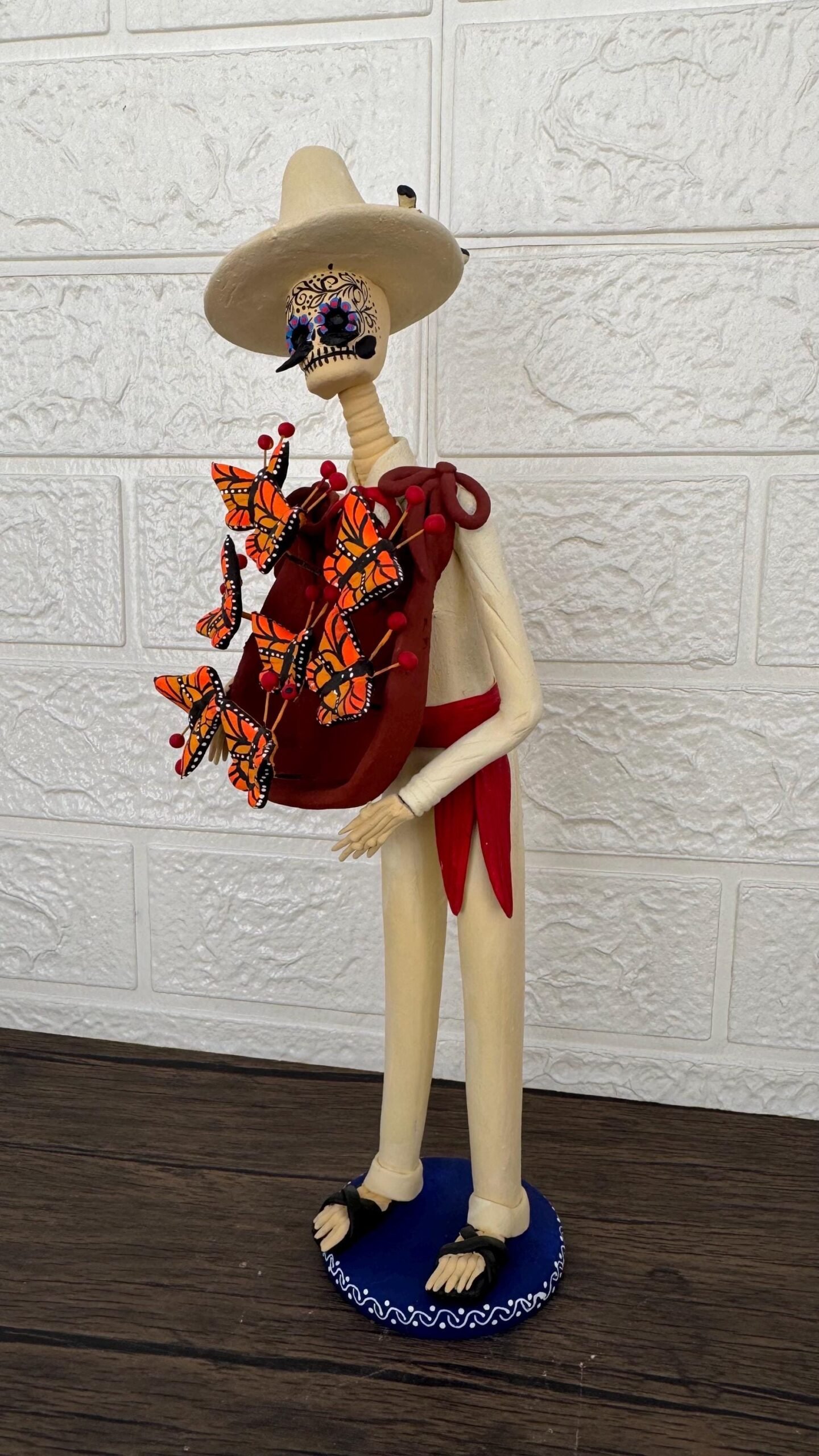 Catrin Skull Elegant Doll Michoacan Mexico Made by Artisans Day Of The Dead Human Skeleton Mexican Decorations Sugar Skull 13” T