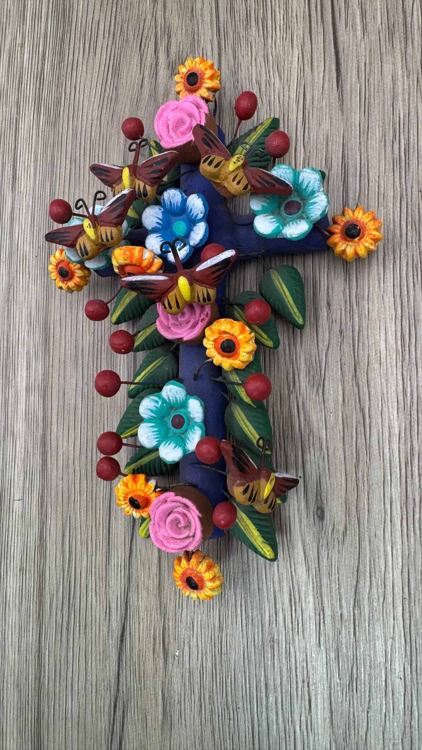 Crucifix, Mexican folk art, Cross Sculpture, Mexican cross, Cross wall hanging, Cross figurine, Decorative cross