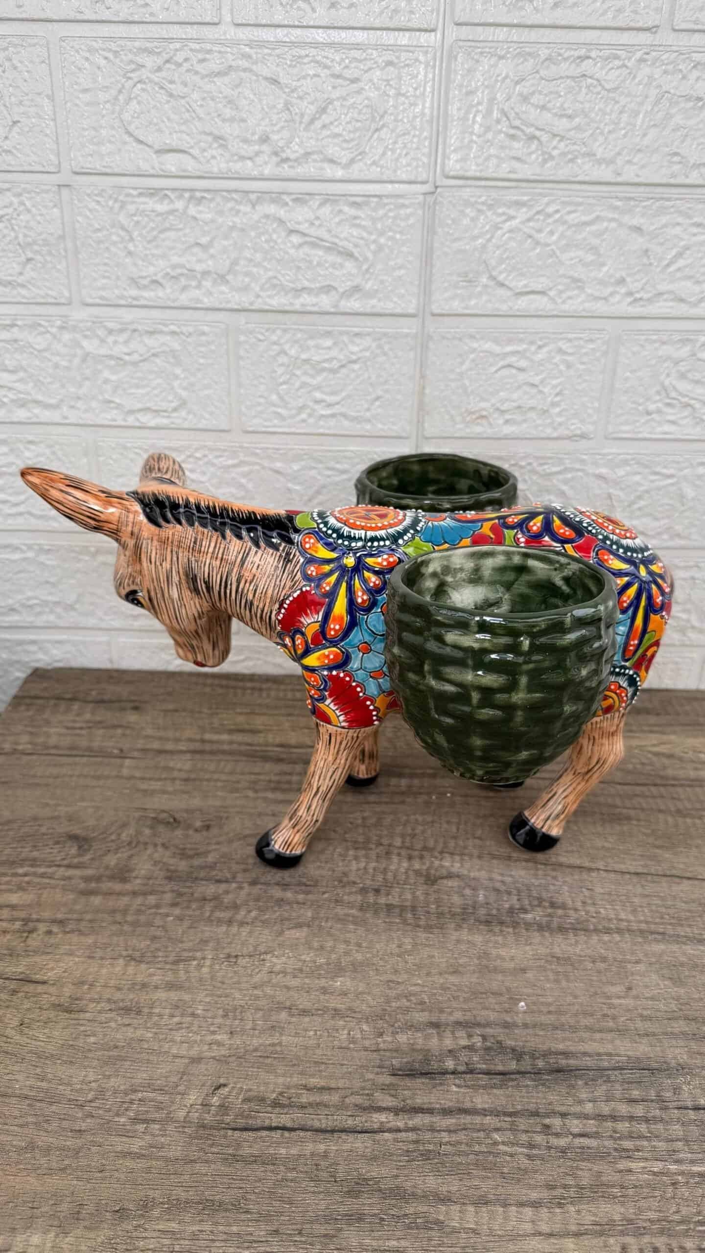 Donkey Pot Planter (2) Talavera Figurine Ceramic Pottery Artisan Hand Painted Farmhouse Decor Vibrant Folk Art from Puebla Decor Burrito
