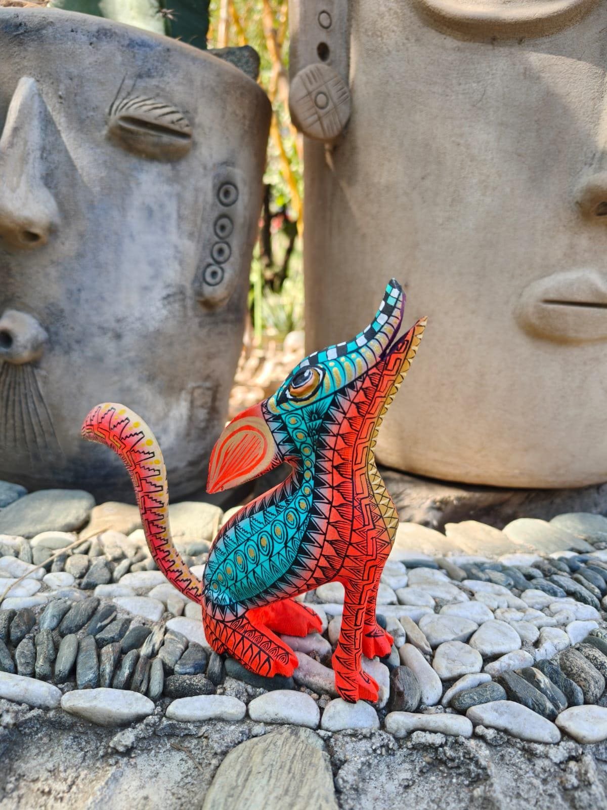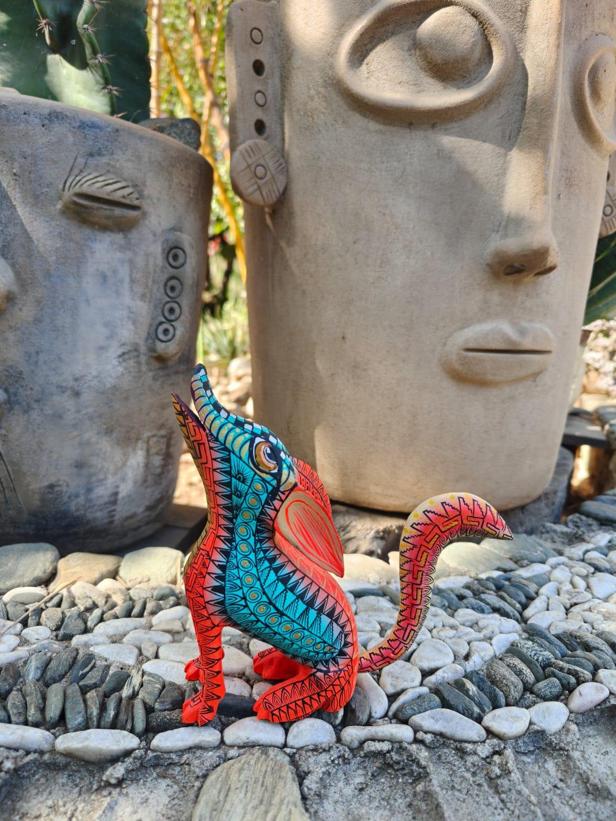 ASK FOR CUSTOMIZE “ Fox figurine – Alebrije – Carved in wood “ Item Description: * Made in Mexico * Made in Oaxaca by native indigenous people * Folk art Item details: * Made of copal wood * Carved and painted by hand * Dimensions: 7” Tall, 5” Long 1.5”wide * The tail is detachable The ALEBRIJE is a type of handicraft native to Mexico, also called Nahuatkzosquit. These are handicrafts made with the carpentry technique and carved in copal wood that are painted with mostly cheerful and vibrant colors. ALEBRIJES are imaginary beings composed of physiognomic elements of different animals, a combination of several animals, not only fantastic but also real that form an amazing being. Alebrijes represent the innovative spirit and creative soul of Oaxaca, Mexico, where the ancestral tradition was created. The pieces, unreal and magical, are the most captivating in the AZTECA country and valued for their originality and extravagance “This alebrije is ideal as a Mexican decoration” Place your order carefully, we will pack it ✅ Product in shipped in box ✅ Express shipping is available for an additional charge, please inquire ✅ You can send this with a special dedication✅ It can be sent with a special gift wrapping (notify) ✅ Any questions do not hesitate, we usually respond in less than an hour 😀.