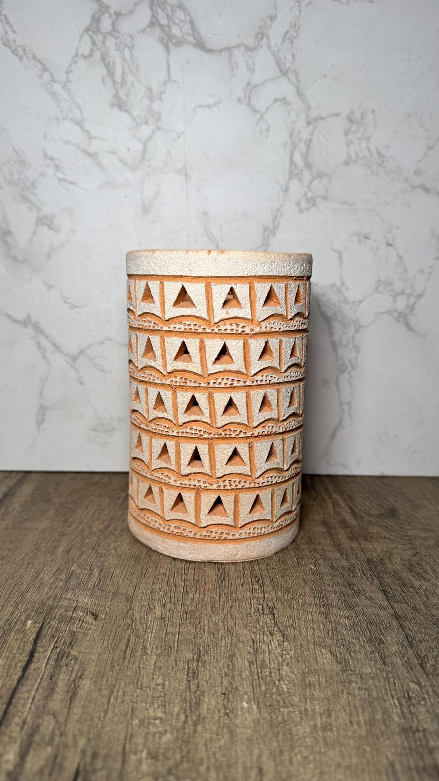 This piece works beautifully as: • A decorative vase for dried or fresh flowers • An indoor planter (use a liner if needed) • A candle holder or luminary for soft ambient light • A statement piece for shelves, tables, or entryways