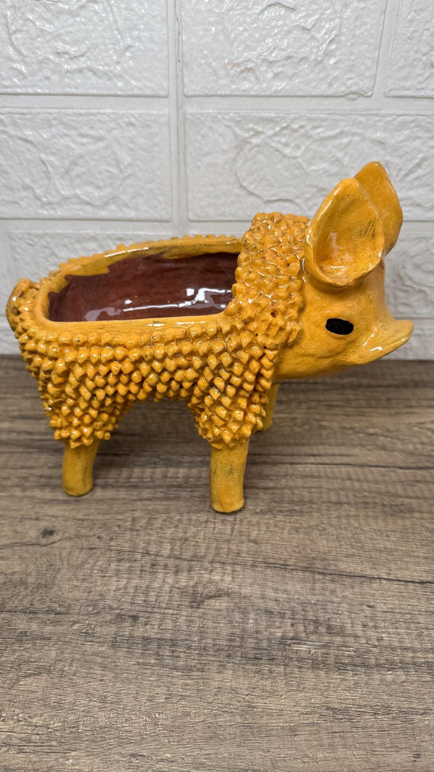 This handmade glazed pig planter or salsa bowl is a unique piece of Mexican folk art, carefully crafted by artisans in Michoacán, Mexico using traditional ceramic techniques passed down through generations.