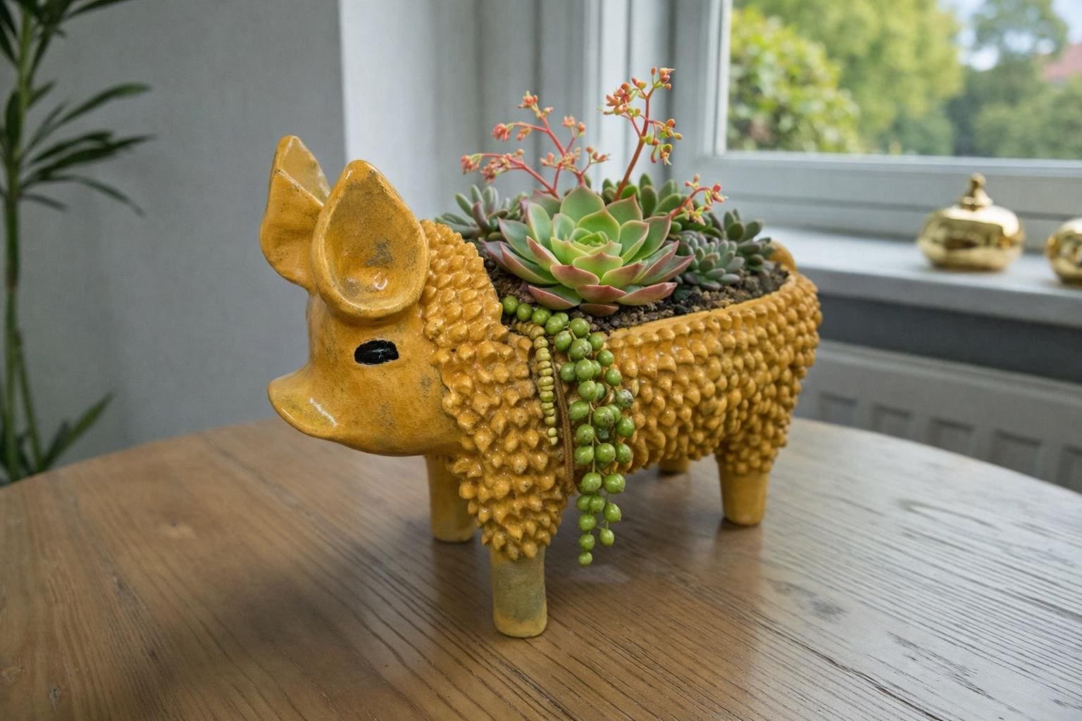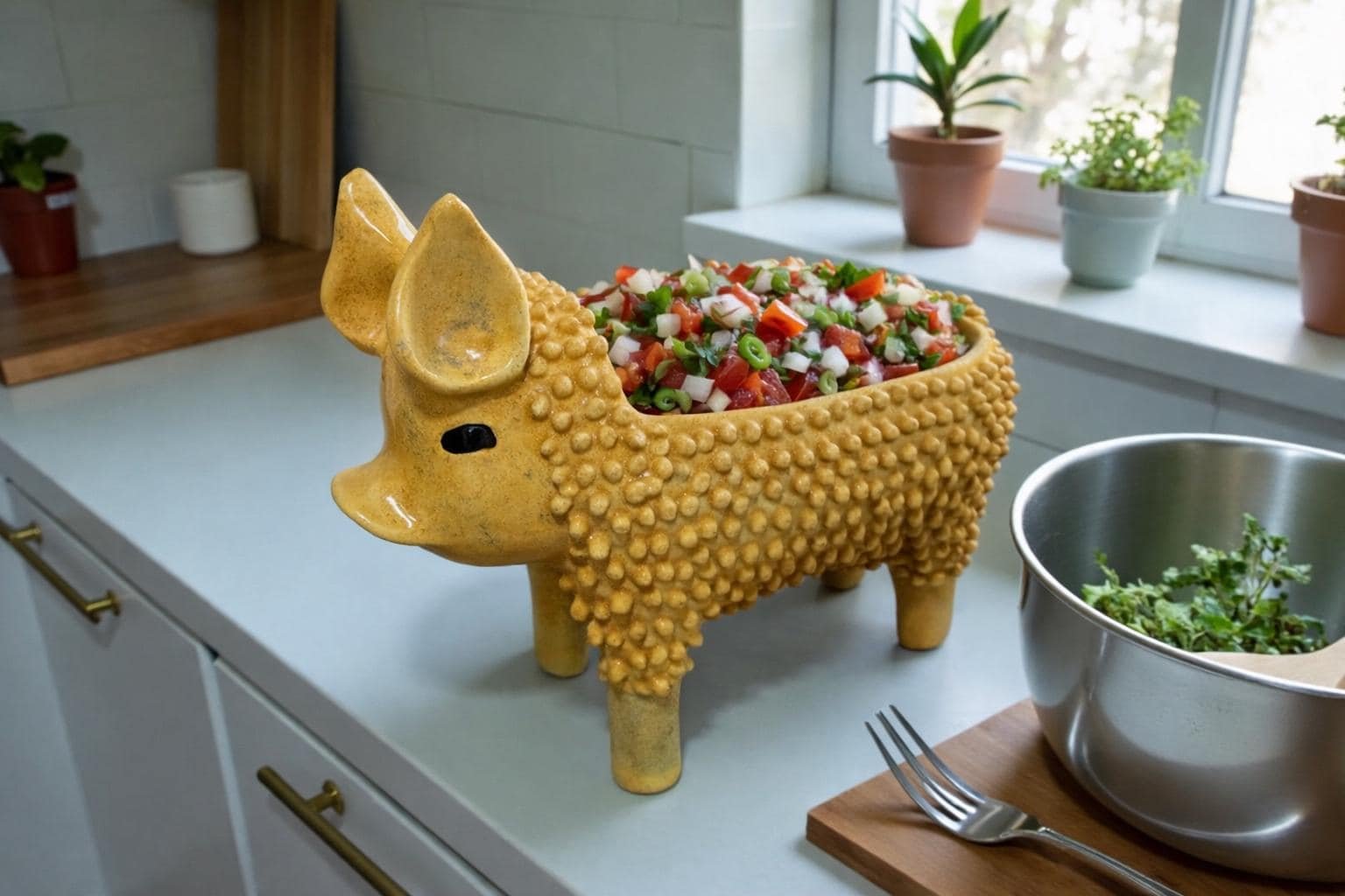 Each pig is 100% handmade, shaped, detailed, and glazed individually, making every piece truly one of a kind. Due to its versatile design, it can be used as a decorative planter for succulents or as a functional salsa bowl for your kitchen or dining table.