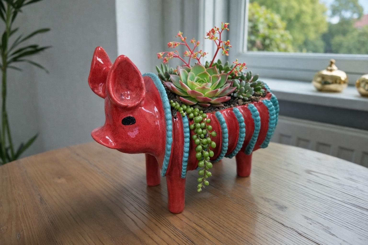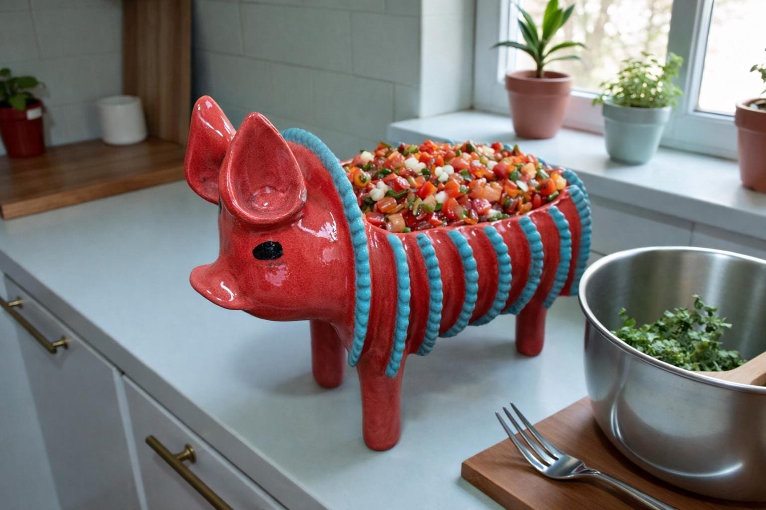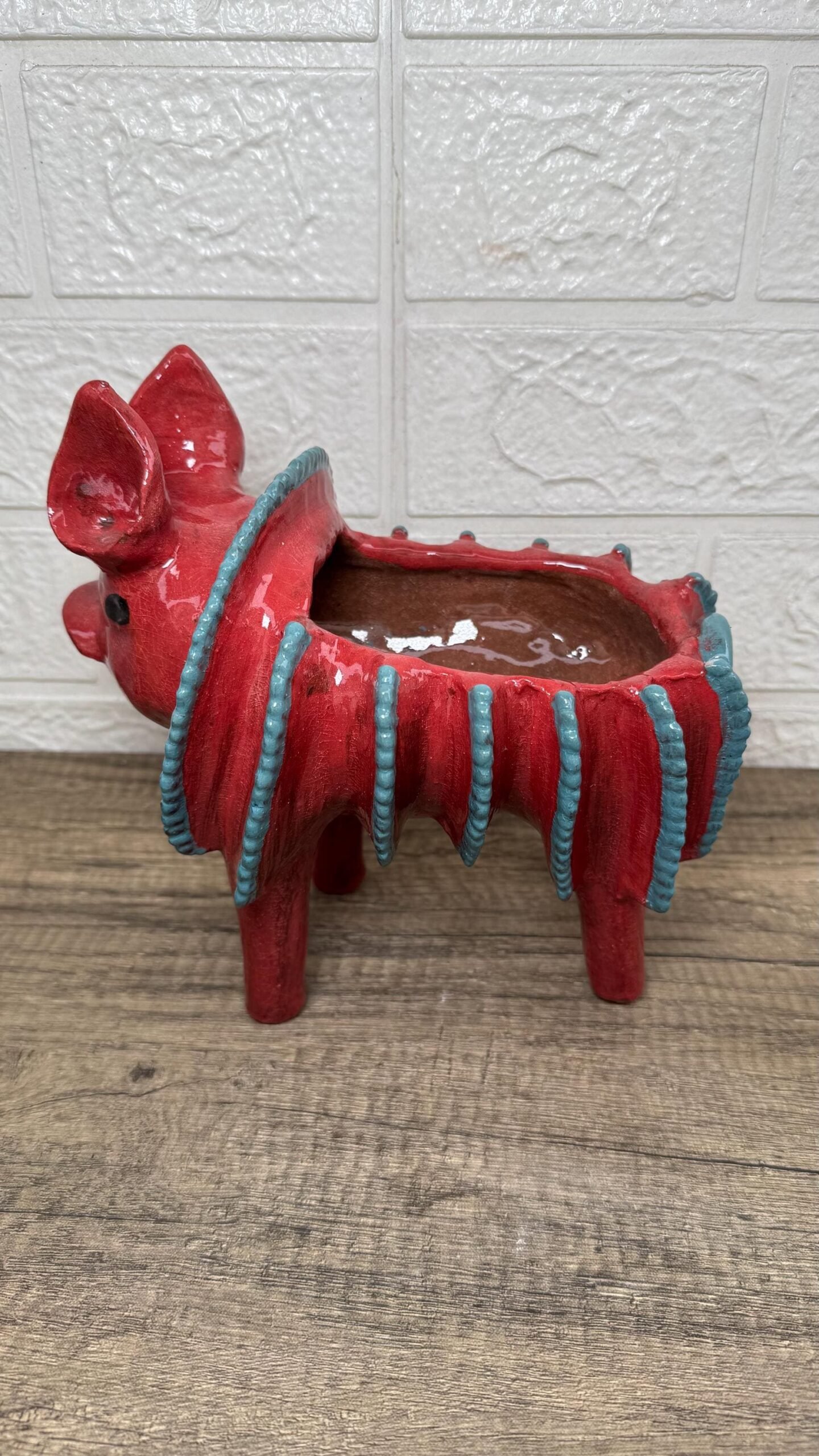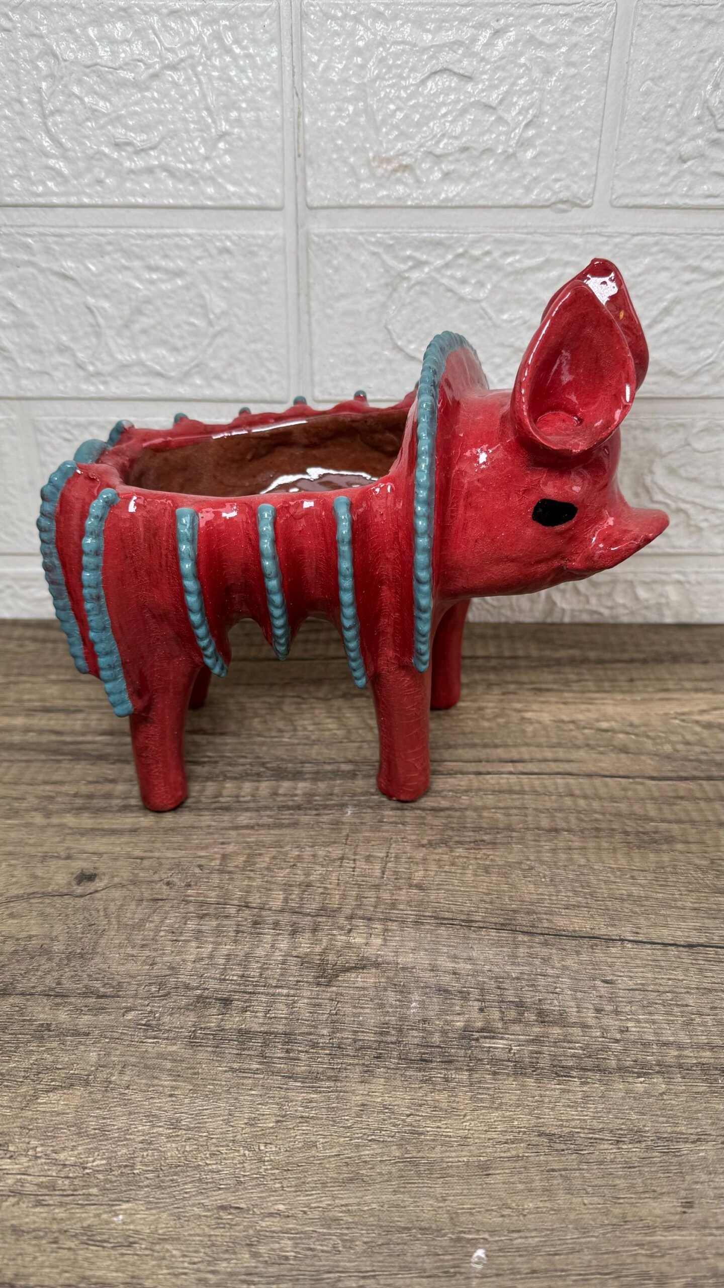 Each pig is 100% handmade, shaped, detailed, and glazed individually, making every piece truly one of a kind. Due to its versatile design, it can be used as a decorative planter for succulents or as a functional salsa bowl for your kitchen or dining table.