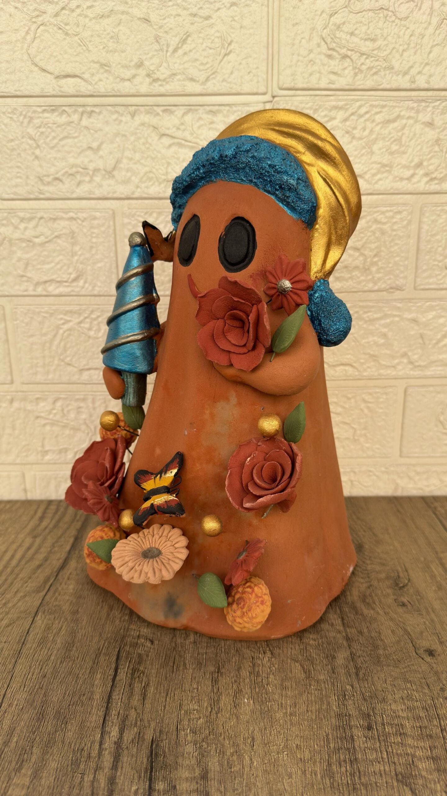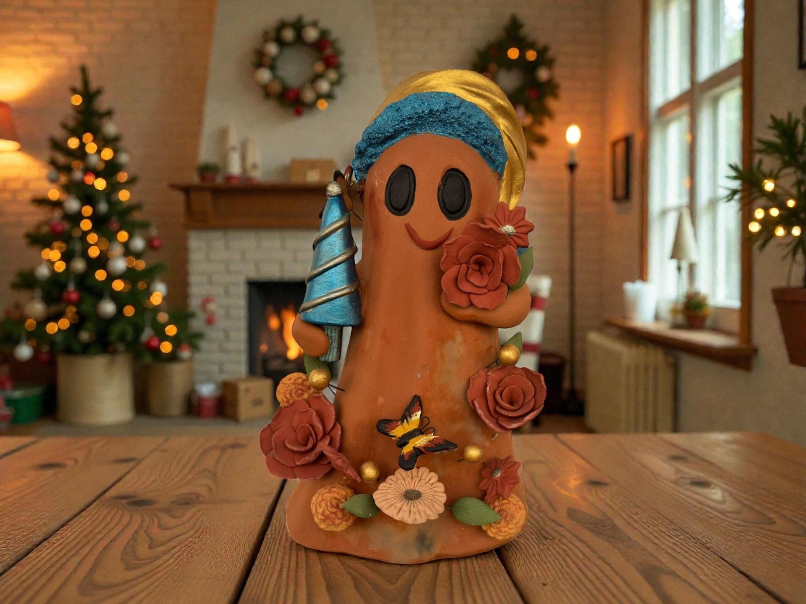Each piece is carefully molded, sculpted, and painted by hand, incorporating festive elements such as flowers, butterflies, and a tiny Christmas tree — all crafted in clay with meticulous attention to detail. Because it’s fully handcrafted, every ghost is one-of-a-kind, making your piece a meaningful and unique addition to your holiday décor.