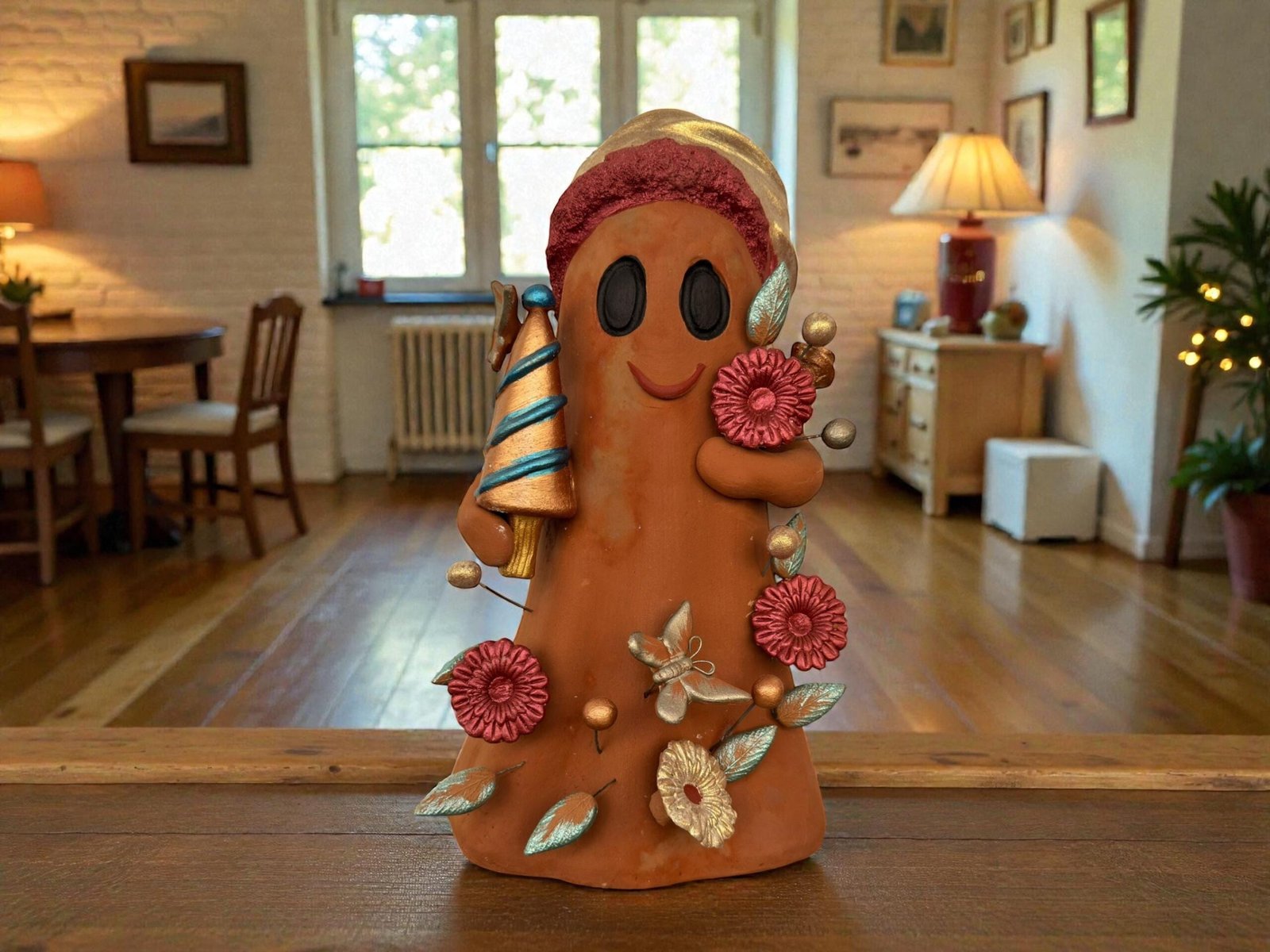 Each piece is carefully molded, sculpted, and painted by hand, incorporating festive elements such as flowers, butterflies, and a tiny Christmas tree — all crafted in clay with meticulous attention to detail. Because it’s fully handcrafted, every ghost is one-of-a-kind, making your piece a meaningful and unique addition to your holiday décor.