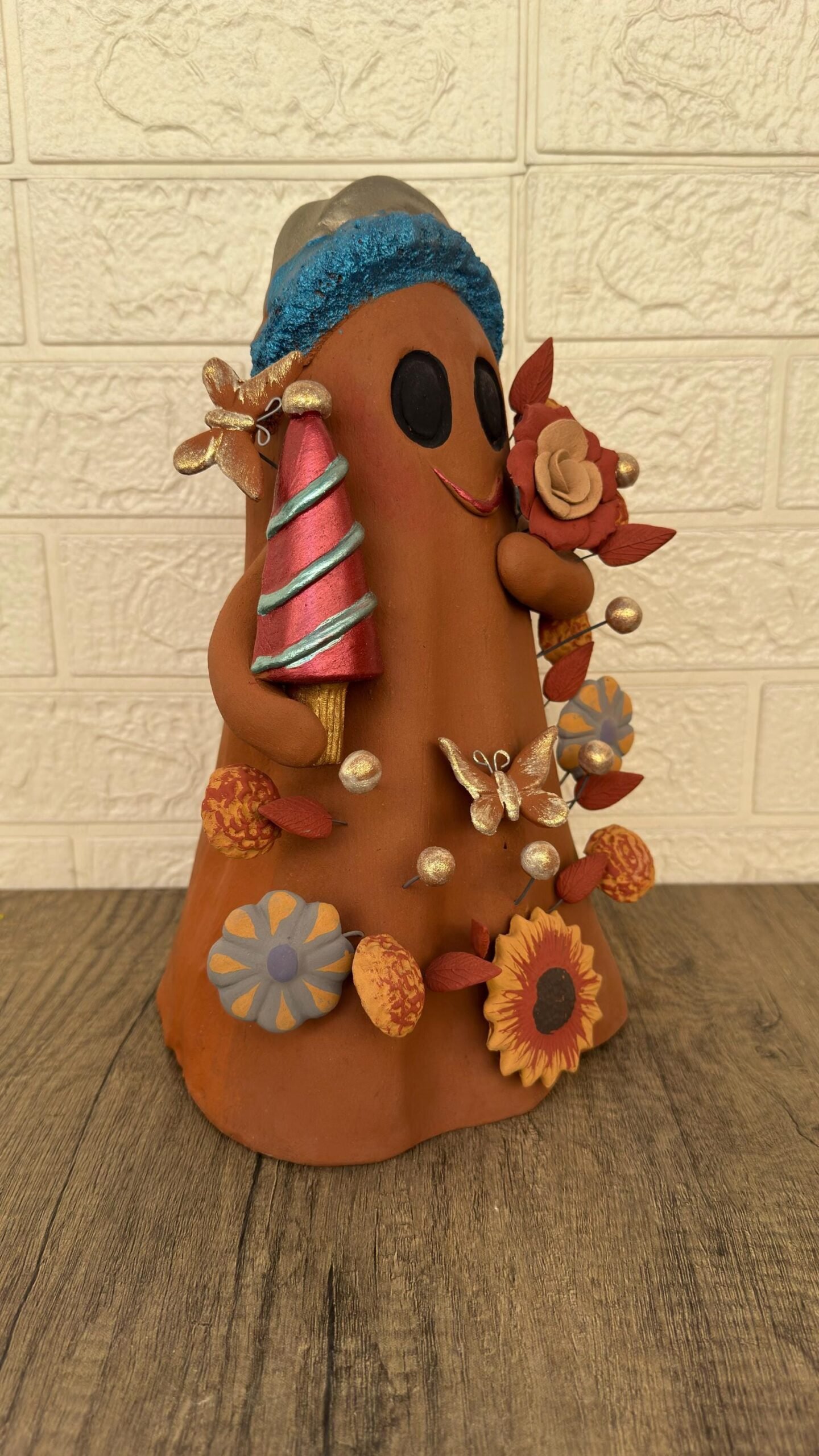 Each piece is carefully molded, sculpted, and painted by hand, incorporating festive elements such as flowers, butterflies, and a tiny Christmas tree — all crafted in clay with meticulous attention to detail. Because it’s fully handcrafted, every ghost is one-of-a-kind, making your piece a meaningful and unique addition to your holiday décor.