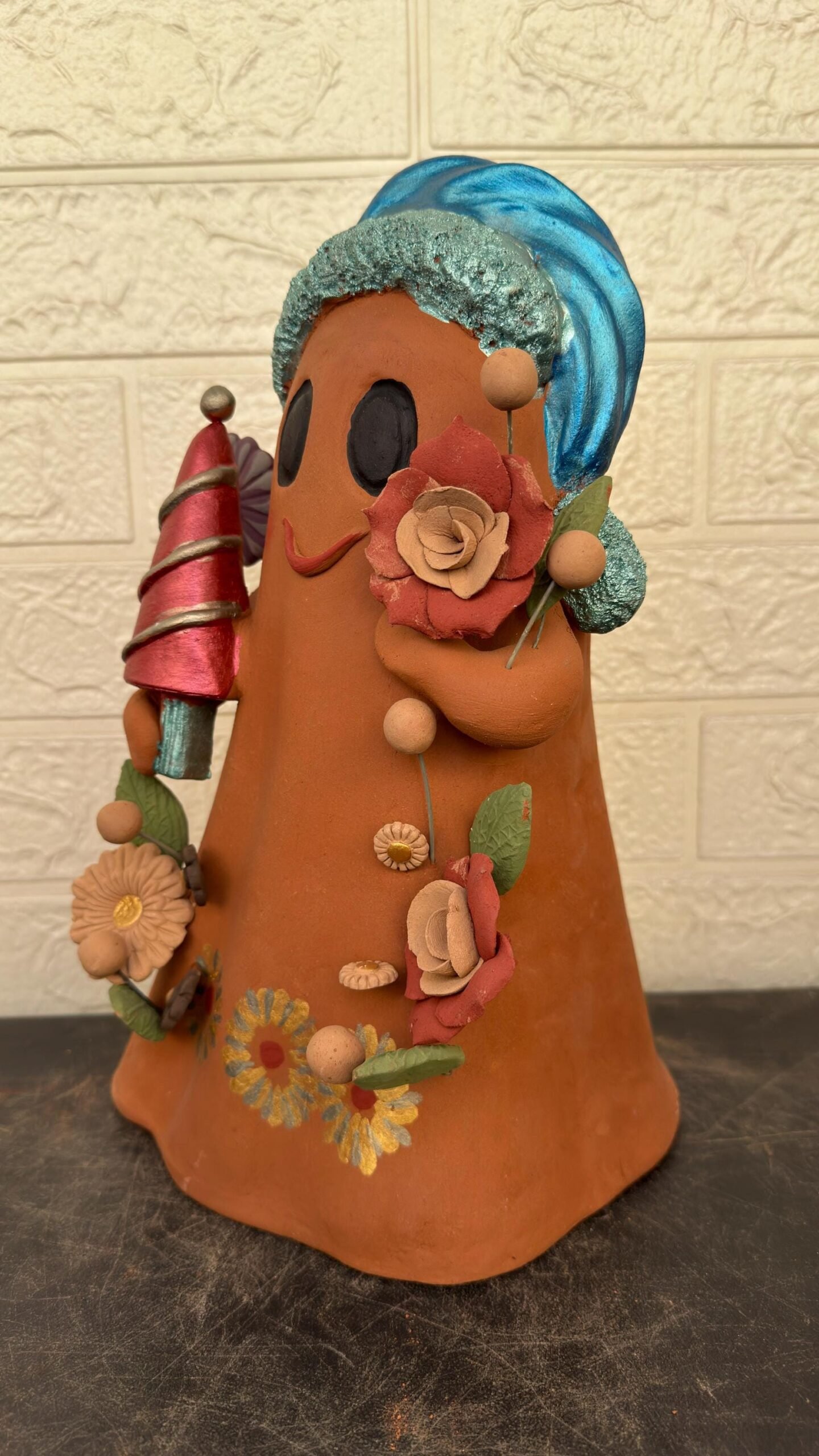 Handmade Mexican Christmas Ghost Sculpture, Clay Holiday Figurine, Metepec Pottery Art, Unique Christmas Home Decor