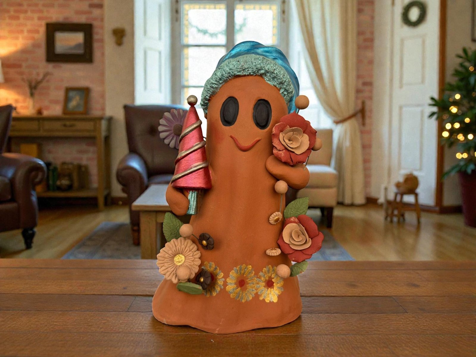 Celebrate the holidays with the charm of authentic Mexican craftsmanship! This adorable Christmas Ghost Sculpture is entirely handmade from clay (barro) by skilled artisans in Metepec, Mexico, a town internationally recognized for its exceptional pottery tradition.