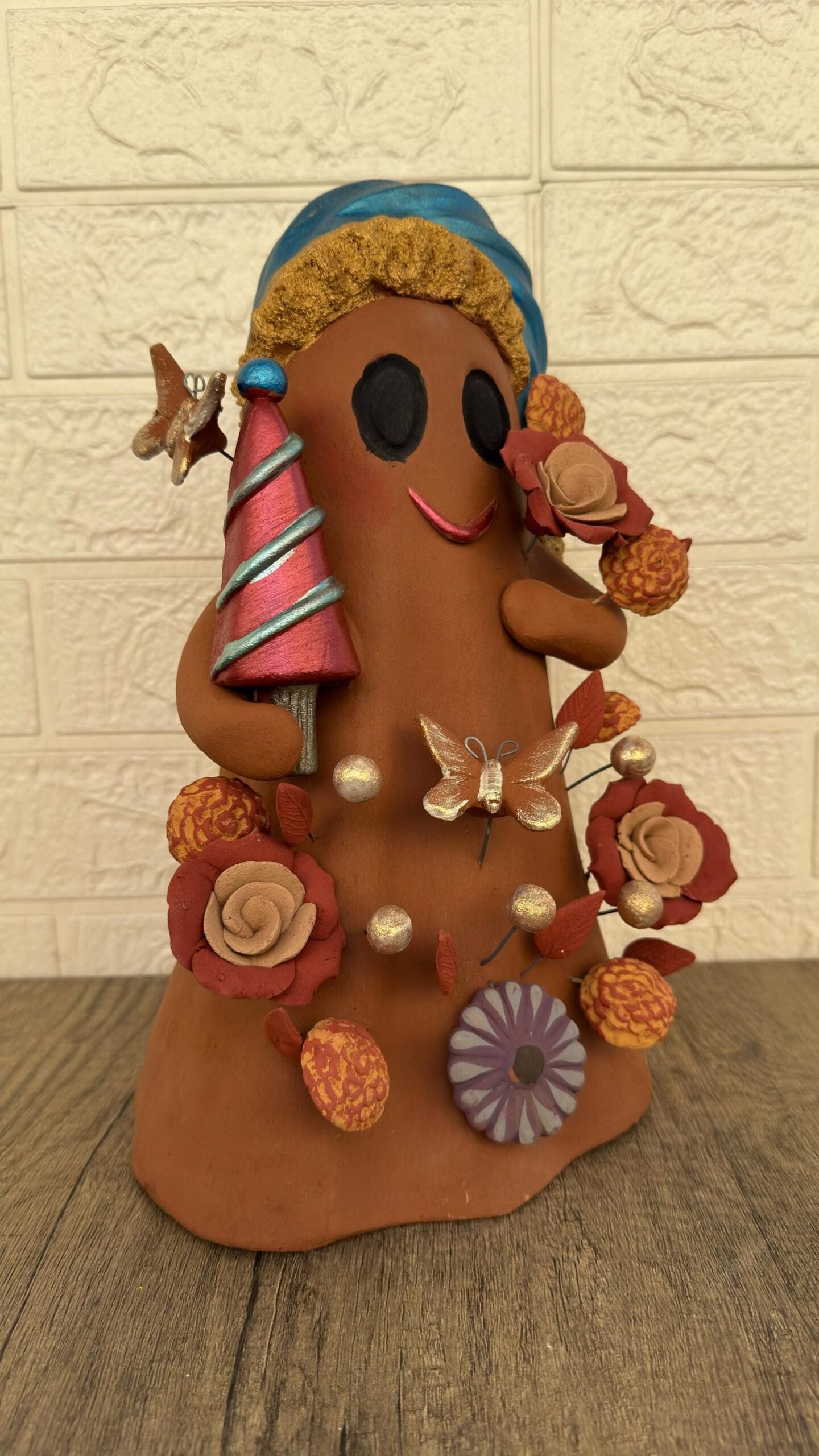 Each piece is carefully molded, sculpted, and painted by hand, incorporating festive elements such as flowers, butterflies, and a tiny Christmas tree — all crafted in clay with meticulous attention to detail. Because it’s fully handcrafted, every ghost is one-of-a-kind, making your piece a meaningful and unique addition to your holiday décor.