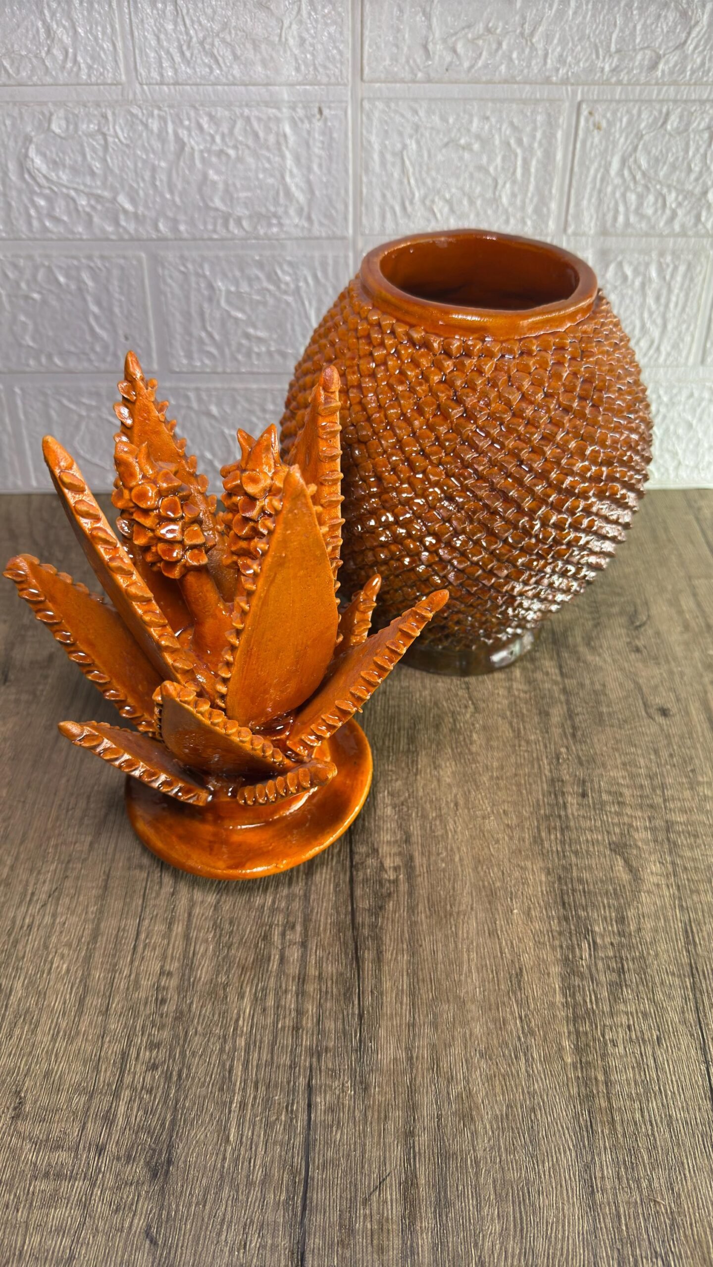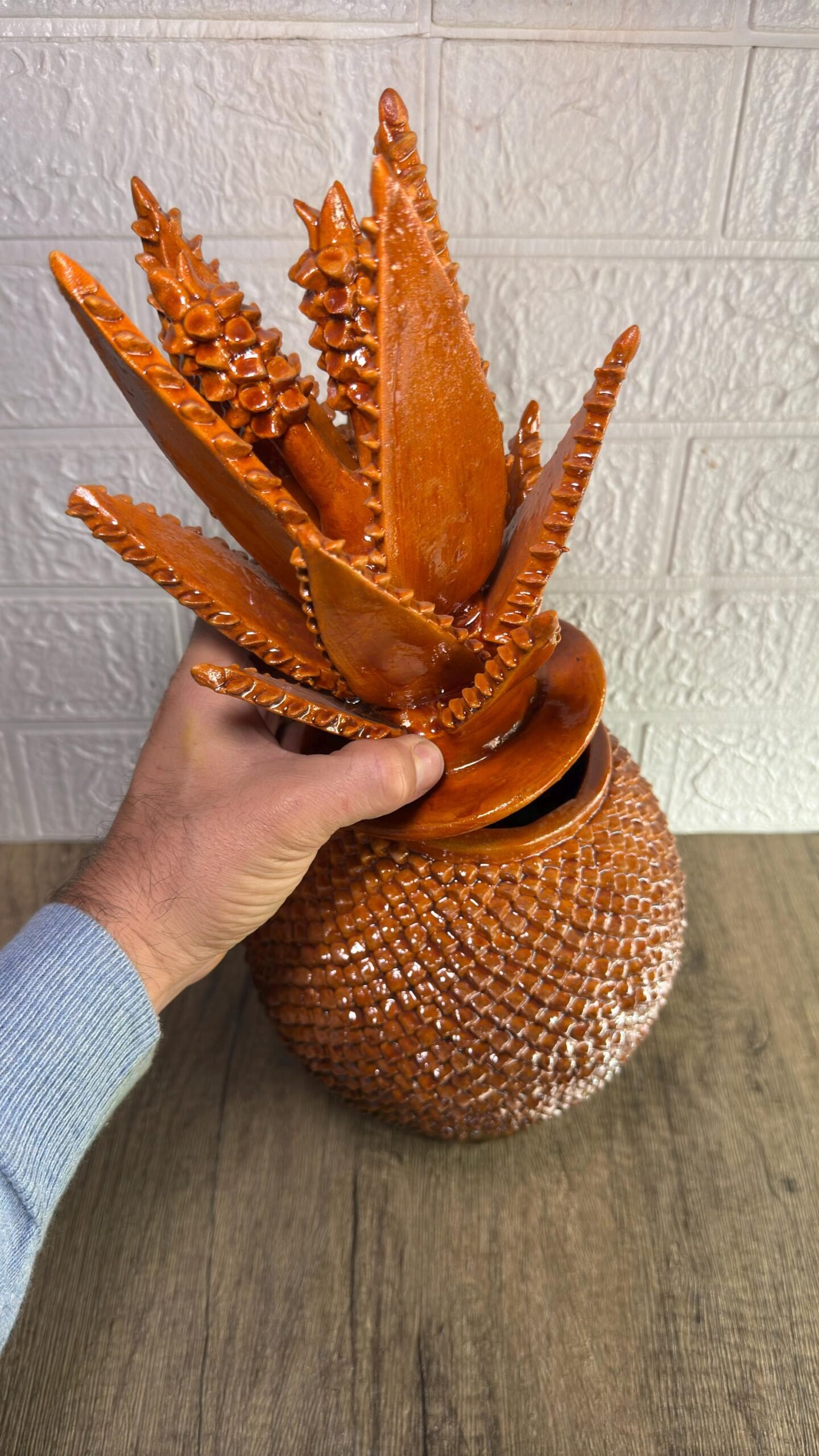 Glazed pineapple – Mexican folk pottery – Mexican folk art This pineapple decor is a unique piece, each part of the scale is made by hand, by artisans from the state of Michoacan, Mexico. Characteristic: – Size: 7.48” x 14.57” – Clay material The pineapple sculpture of Michoacan is distinguished in Popular Art in Mexico not only for its quality, but also for the ancestral techniques they use, making a fusion of prehispanic techniques. Glazed clay, named for its glazed, glass-like appearance. The potters’ process consists of applying to the clay pieces, after their first firing, a film or layer that, after melting in an oven, takes on a crystalline appearance. It is therefore a smooth and waterproof coating achieved in a second firing that must reach 800 °C to 1300 °C. ______________________________________________________________________________________________________________________________________________________________________________________________________________________ This beautiful decoration pineapple can be used as a home decoration, the top of the pinecone can be removed to store items inside. By buying one of these pieces you support the families of artisans who work in this beautiful art. ______________________________________________________________________________________________________________________________________________________________________________________________________________________ IMPORTANT NOTE: – Please note that as this is a handmade enameled piece there may be some imperfections. – All our fragile products, we pack them with special materials to guarantee their protection, if there is any problem with your package, please contact us to solve it as soon as possible. ______________________________________________________________________________________________________________________________________________________________________________________________________________________ Order carefully, we will pack ✅ Express shipping is available for an additional charge, please ask ✅ You can send this with a special dedication✅ It can be sent with a special wrapping as a gift ✅ Any questions please do not hesitate, we usually respond in less than an hour 😀