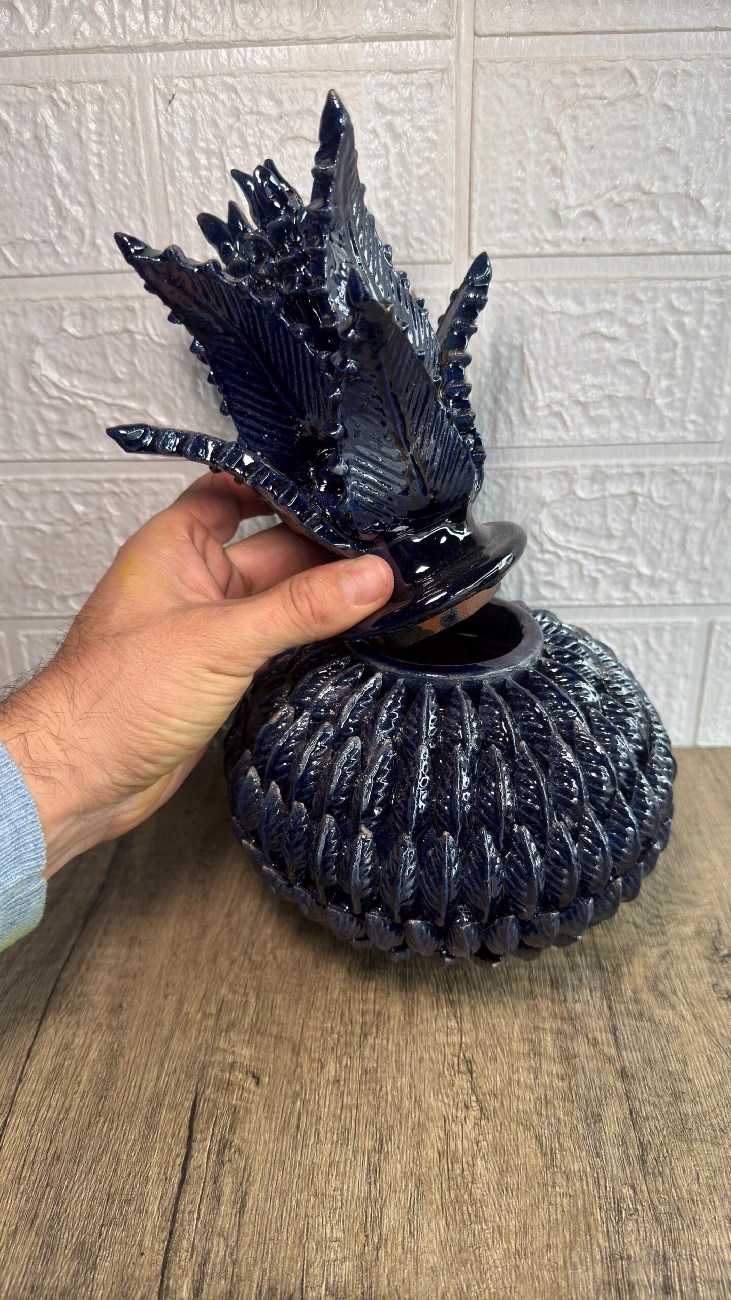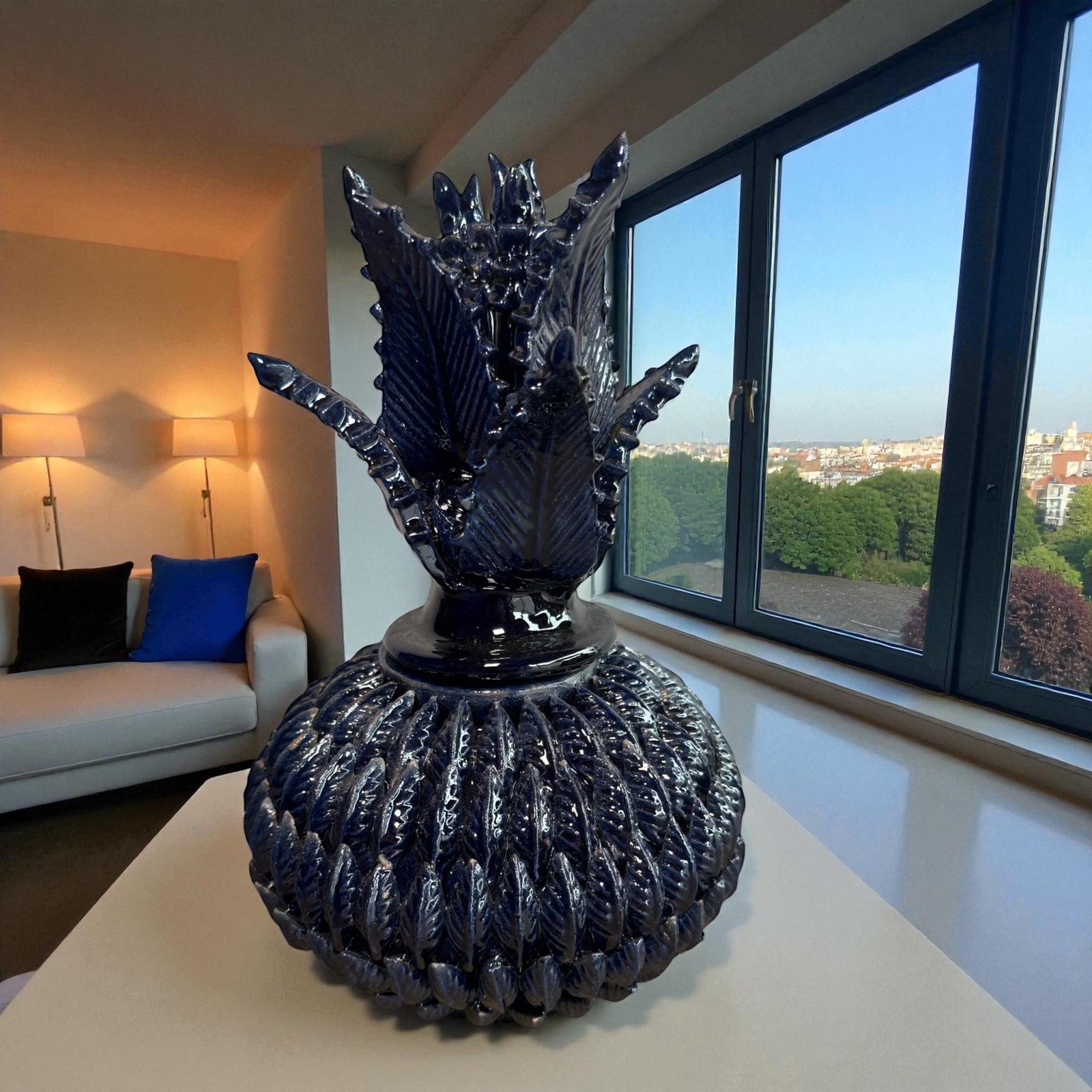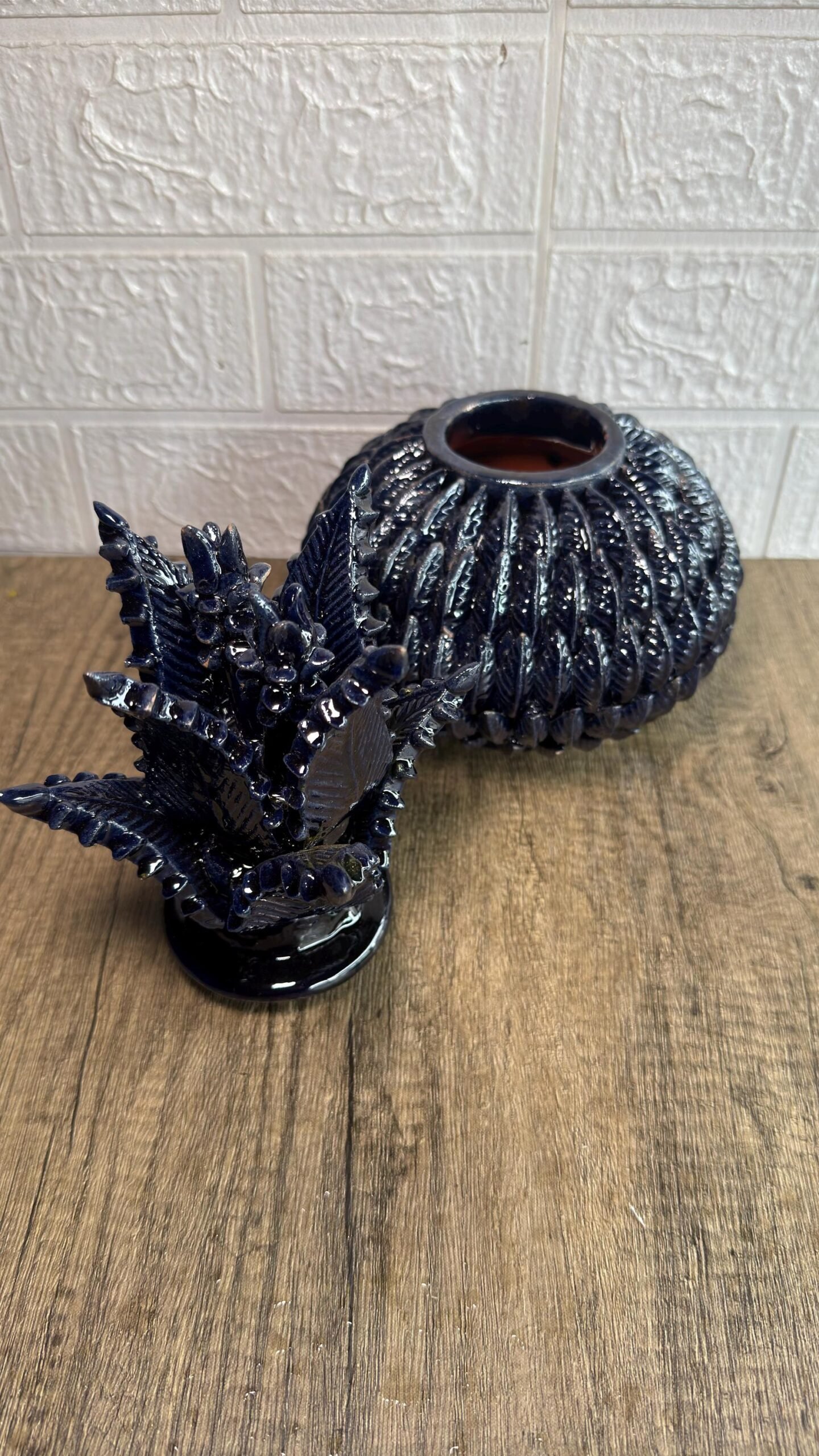 The pineapple sculpture of Michoacan is distinguished in Popular Art in Mexico not only for its quality, but also for the ancestral techniques they use, making a fusion of prehispanic techniques. Glazed clay, named for its glazed, glass-like appearance.