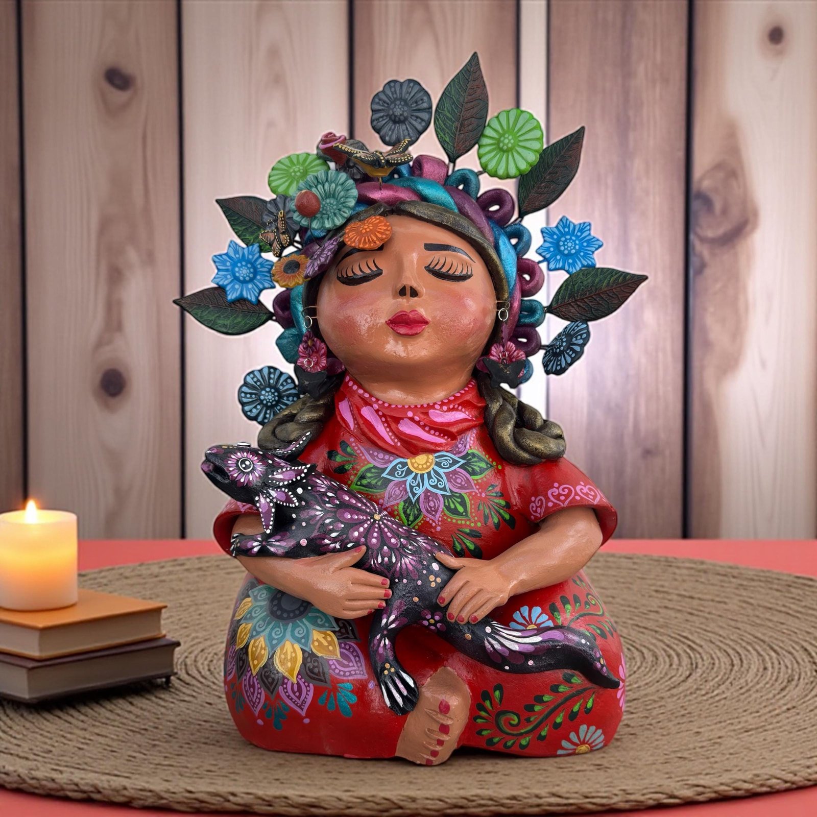 Pachamama Handmade Sculpture – Mexican Mother Earth Art, Colorful Clay Figurine, Spiritual Decor, Indigenous Folk Art, Home Decor Metepec