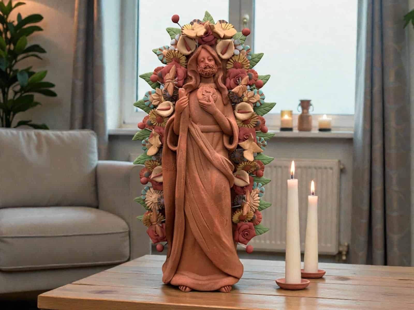 Saint Jude Thaddeus Clay Statue From Metepec Estado de México, San Juditas Folk Art Artisans Handmade, Religious Home Decor Spiritual 15”