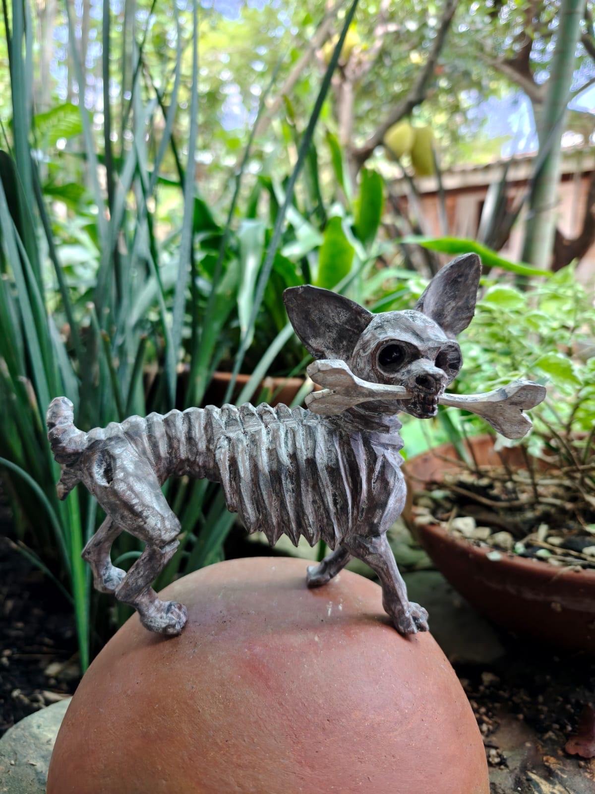 Skeletal/Bone Dog statue Alebrije Sculpture, Wooden Chihuahua Mexican Pet Figure, Made Of Wood And Carved By Hand ASK FOR CUSTOMIZE