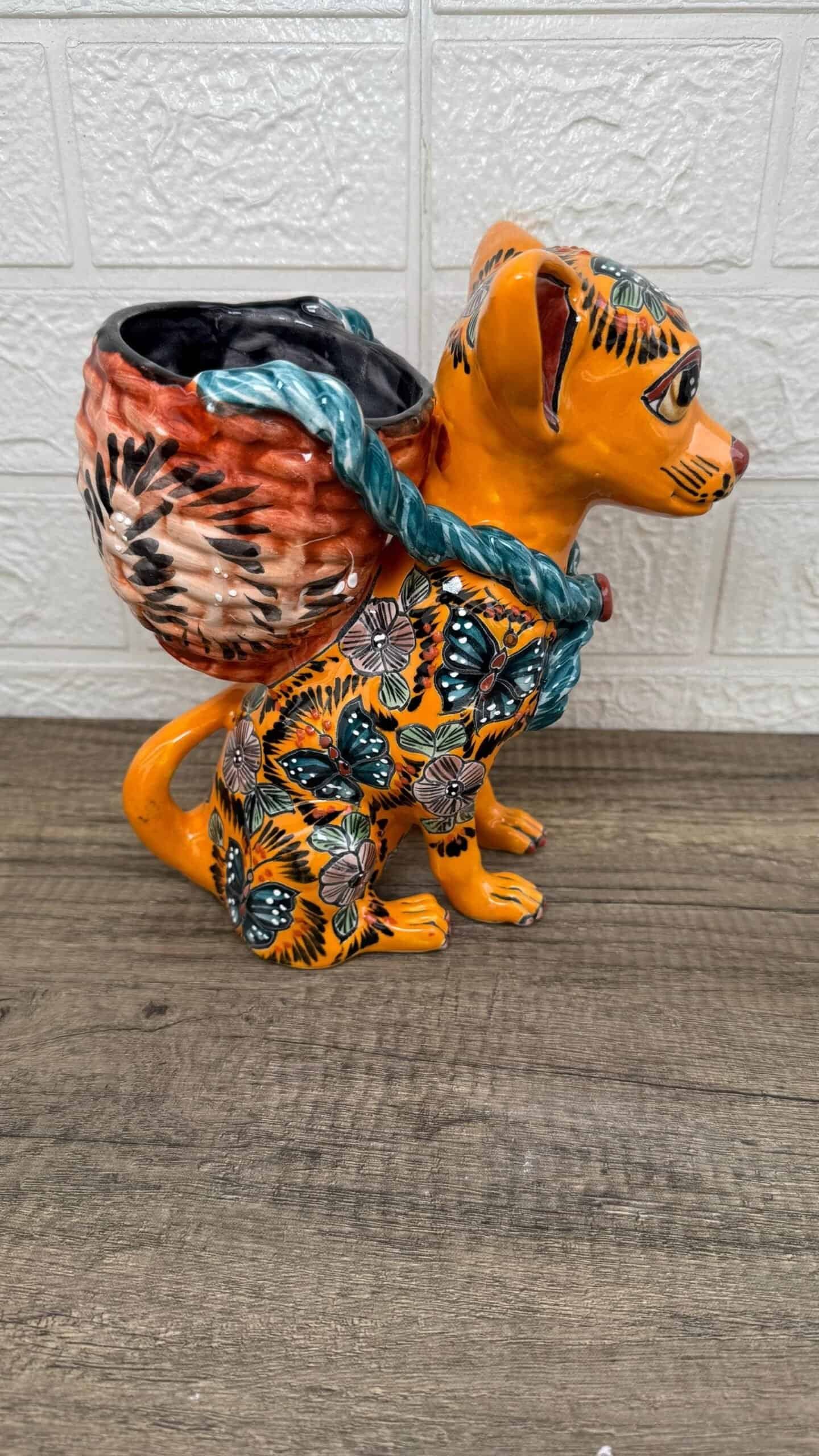“Talavera Chihuahua – Ceramic chihuahua – Dog statue – Puebla“ Characteristics: – Made and painted by hand – Ceramic material – Dimensions: 4”wide 7” long, 8.5” tall, (4” pot) Order carefully, we will pack ✅ Product shipped in box ✅ I ship priority mail from 3 to 5 business days✅ Express shipping is available for an additional charge, please ask ✅ You can send this with a special dedication✅ It can be sent with a special wrapping as a gift ✅ This type of pottery is a form of majolica earthenware that has been produced in Mexico since the 16th century. Talavera ceramic Puebla is known for its vibrant colors and intricate designs, which often feature floral patterns and geometric shapes. The process of making Talavera ceramics is highly skilled and involves several steps, including shaping the clay, firing it in a kiln, applying a base glaze, painting the design by hand with mineral pigments, and then firing it again to set the design. Talavera ceramic Puebla is highly valued both for its aesthetic beauty and for its cultural significance. The tradition of making Talavera ceramics has been passed down from generation to generation in Puebla, and many of the techniques and designs used today have been handed down for centuries. Today, Talavera ceramic Puebla is a popular souvenir for tourists visiting Mexico, and it is also highly sought after by collectors and art enthusiasts around the world. The city of Puebla has also been designated a UNESCO World Heritage Site for its role in preserving and promoting the art and culture of Talavera ceramics.