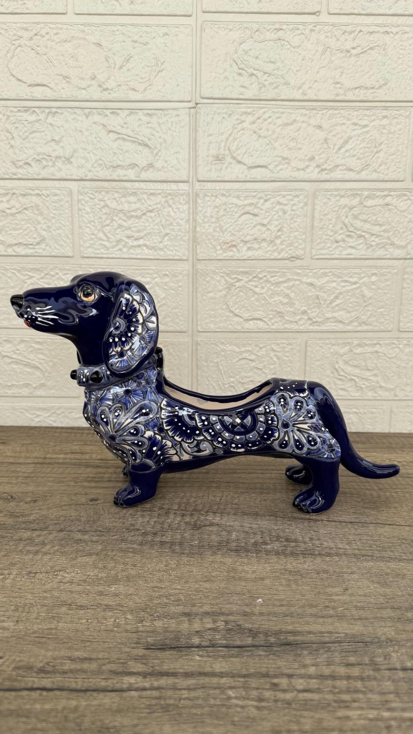 “Talavera Dachshund – Ceramic Dachshund – Dog statue – Puebla“ Characteristics: -Planter Pot – Made and painted by hand – Ceramic material – Dimensions: 3.5” wide 7.5” Tall, 11.5” Long Order carefully, we will pack ✅ Product shipped in box ✅ I ship priority mail from 3 to 5 business days✅ Express shipping is available for an additional charge, please ask ✅ You can send this with a special dedication✅ It can be sent with a special wrapping as a gift ✅ This type of pottery is a form of majolica earthenware that has been produced in Mexico since the 16th century. Talavera ceramic Puebla is known for its vibrant colors and intricate designs, which often feature floral patterns and geometric shapes. The process of making Talavera ceramics is highly skilled and involves several steps, including shaping the clay, firing it in a kiln, applying a base glaze, painting the design by hand with mineral pigments, and then firing it again to set the design. Talavera ceramic Puebla is highly valued both for its aesthetic beauty and for its cultural significance. The tradition of making Talavera ceramics has been passed down from generation to generation in Puebla, and many of the techniques and designs used today have been handed down for centuries. Today, Talavera ceramic Puebla is a popular souvenir for tourists visiting Mexico, and it is also highly sought after by collectors and art enthusiasts around the world. The city of Puebla has also been designated a UNESCO World Heritage Site for its role in preserving and promoting the art and culture of Talavera ceramics.