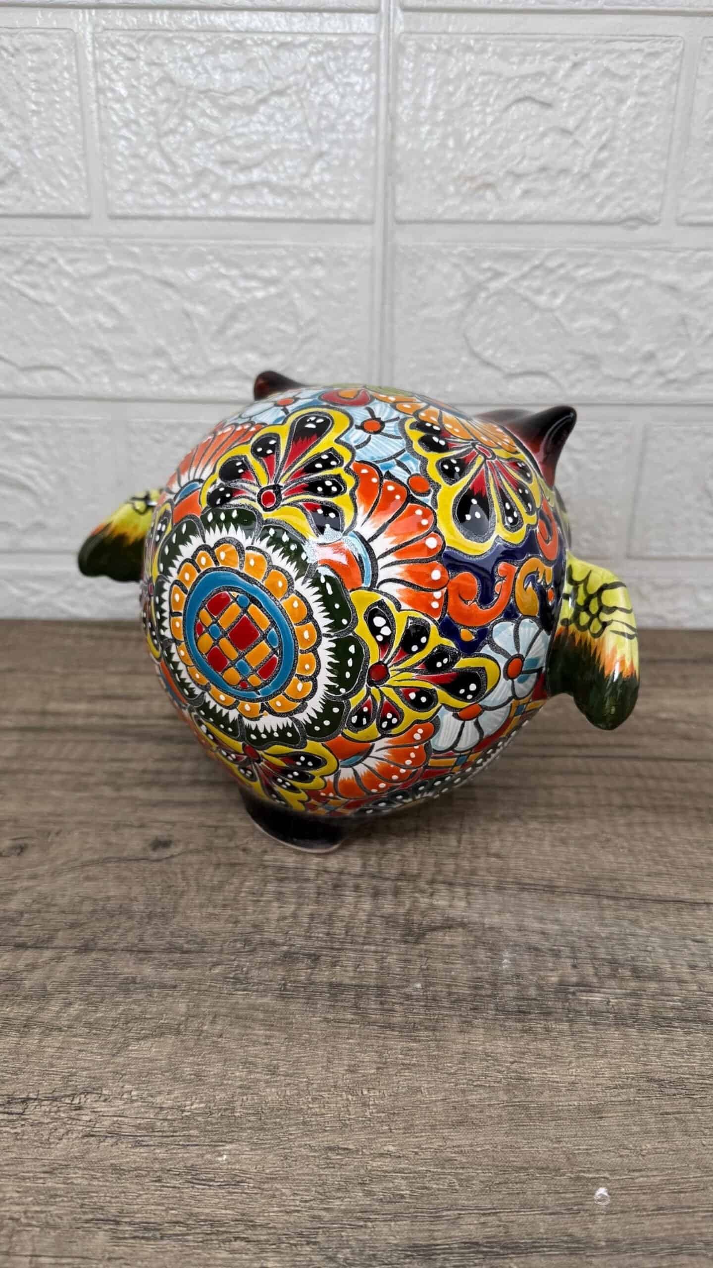 “Talavera owl – Ceramic – Puebla“ Characteristics: – Made and painted by hand – Ceramic material – Dimensions: 8” wide, 6” tall Order carefully, we will pack ✅ Product shipped in box ✅ I ship priority mail from 3 to 5 business days✅ Express shipping is available for an additional charge, please ask ✅ You can send this with a special dedication✅ It can be sent with a special wrapping as a gift ✅ This type of pottery is a form of majolica earthenware that has been produced in Mexico since the 16th century. Talavera ceramic Puebla is known for its vibrant colors and intricate designs, which often feature floral patterns and geometric shapes. The process of making Talavera ceramics is highly skilled and involves several steps, including shaping the clay, firing it in a kiln, applying a base glaze, painting the design by hand with mineral pigments, and then firing it again to set the design. Talavera ceramic Puebla is highly valued both for its aesthetic beauty and for its cultural significance. The tradition of making Talavera ceramics has been passed down from generation to generation in Puebla, and many of the techniques and designs used today have been handed down for centuries. Today, Talavera ceramic Puebla is a popular souvenir for tourists visiting Mexico, and it is also highly sought after by collectors and art enthusiasts around the world. The city of Puebla has also been designated a UNESCO World Heritage Site for its role in preserving and promoting the art and culture of Talavera ceramics.
