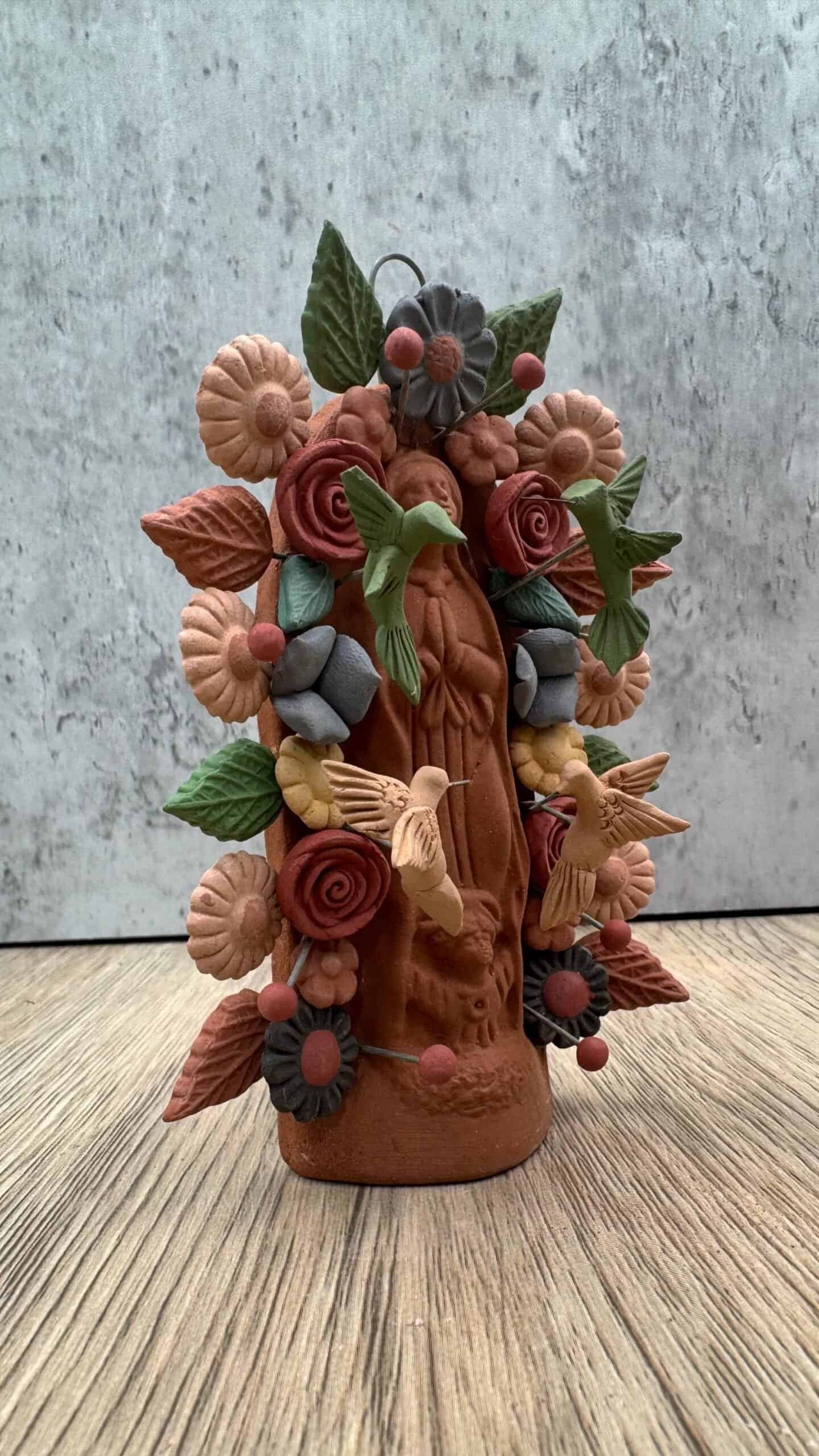 • Features: Virgin of Guadalupe surrounded by hand-decorated floral motifs
