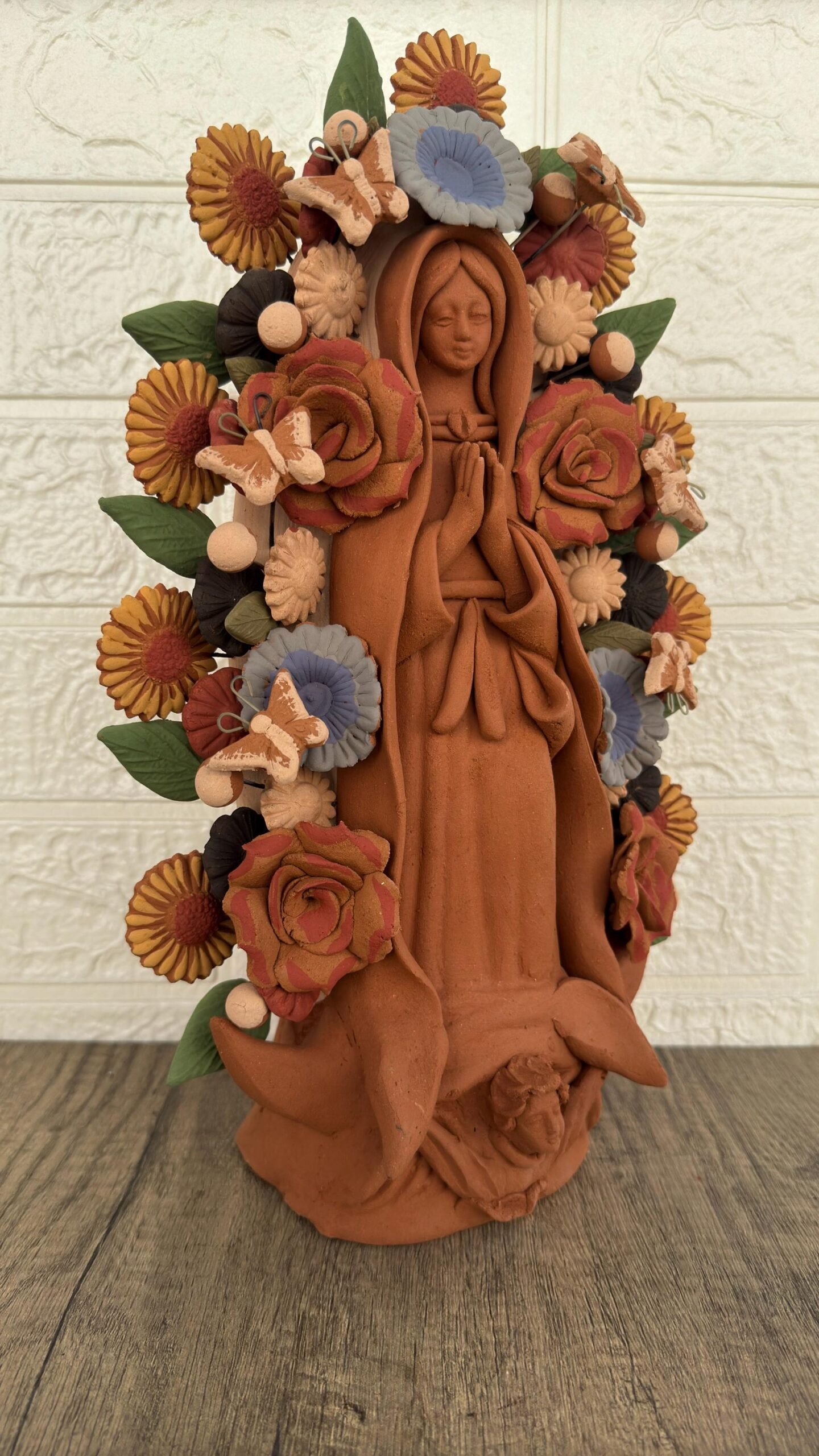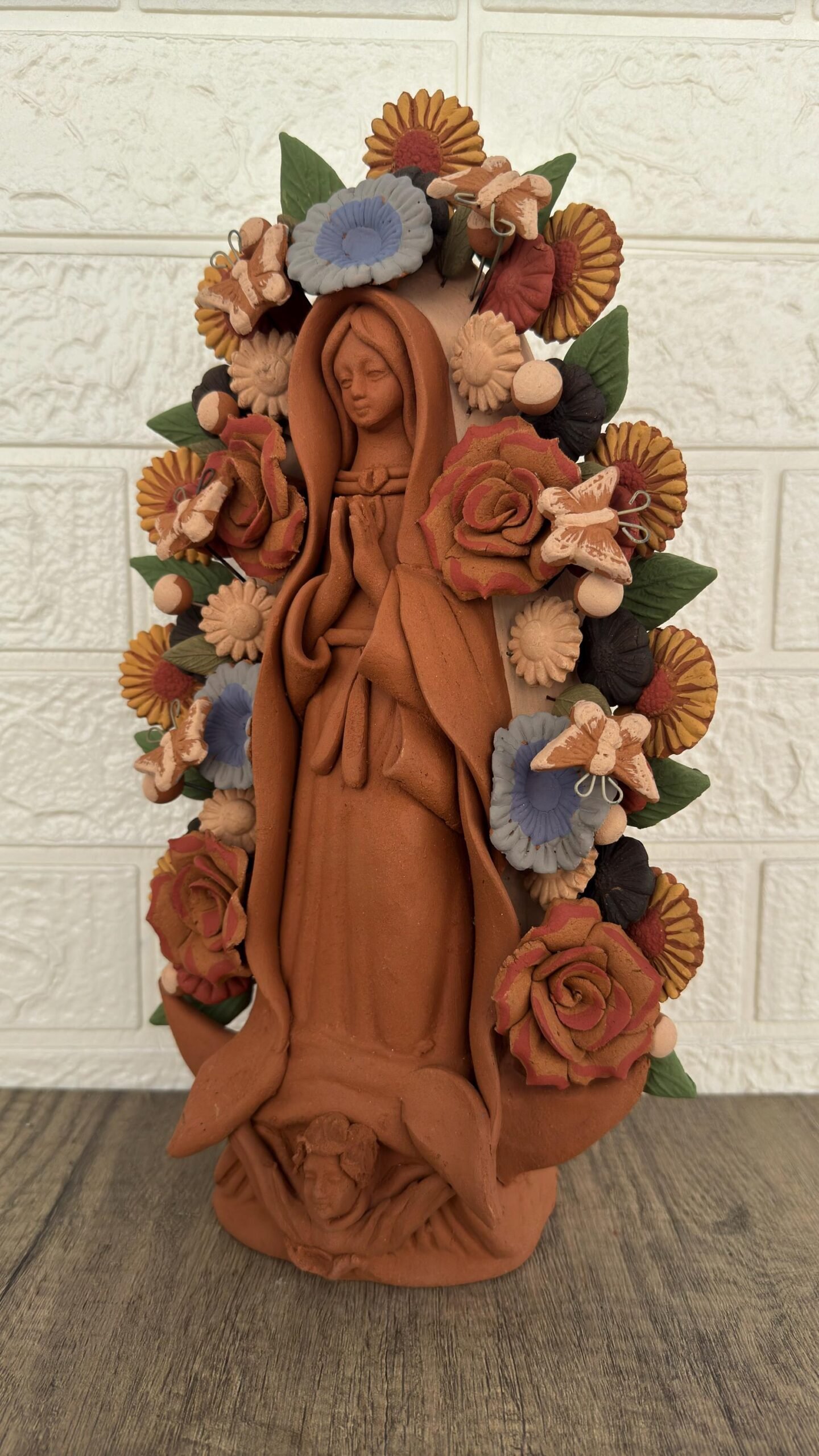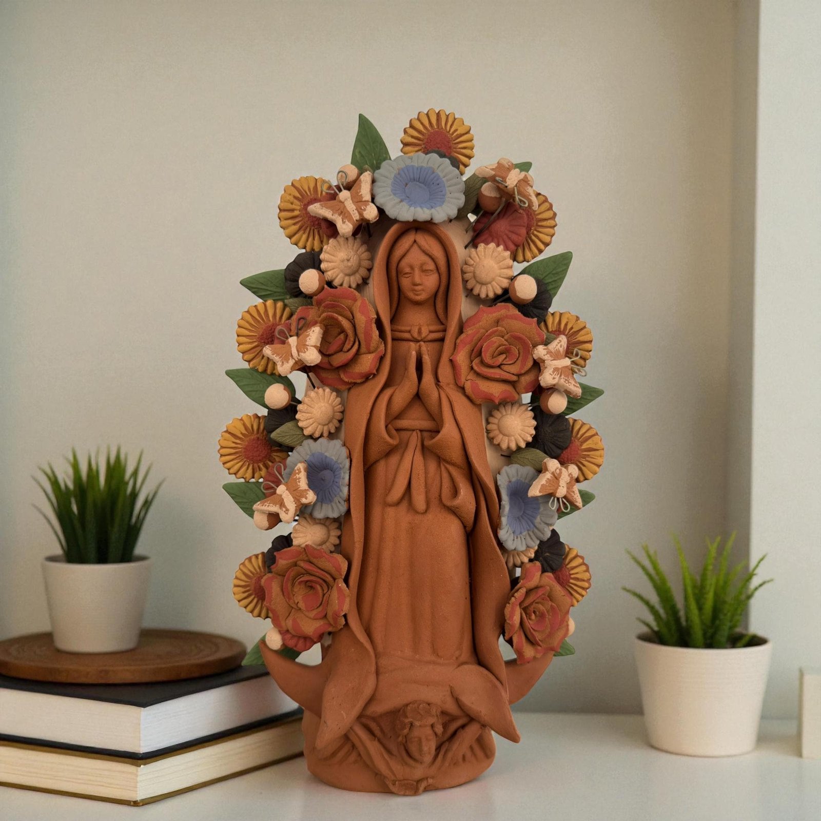 Virgin Mary Handmade Clay Piece, Virgen de Guadalupe Mexican Decoration, Mary Virgin Sculpture, Metepec Estado de México Virgencita