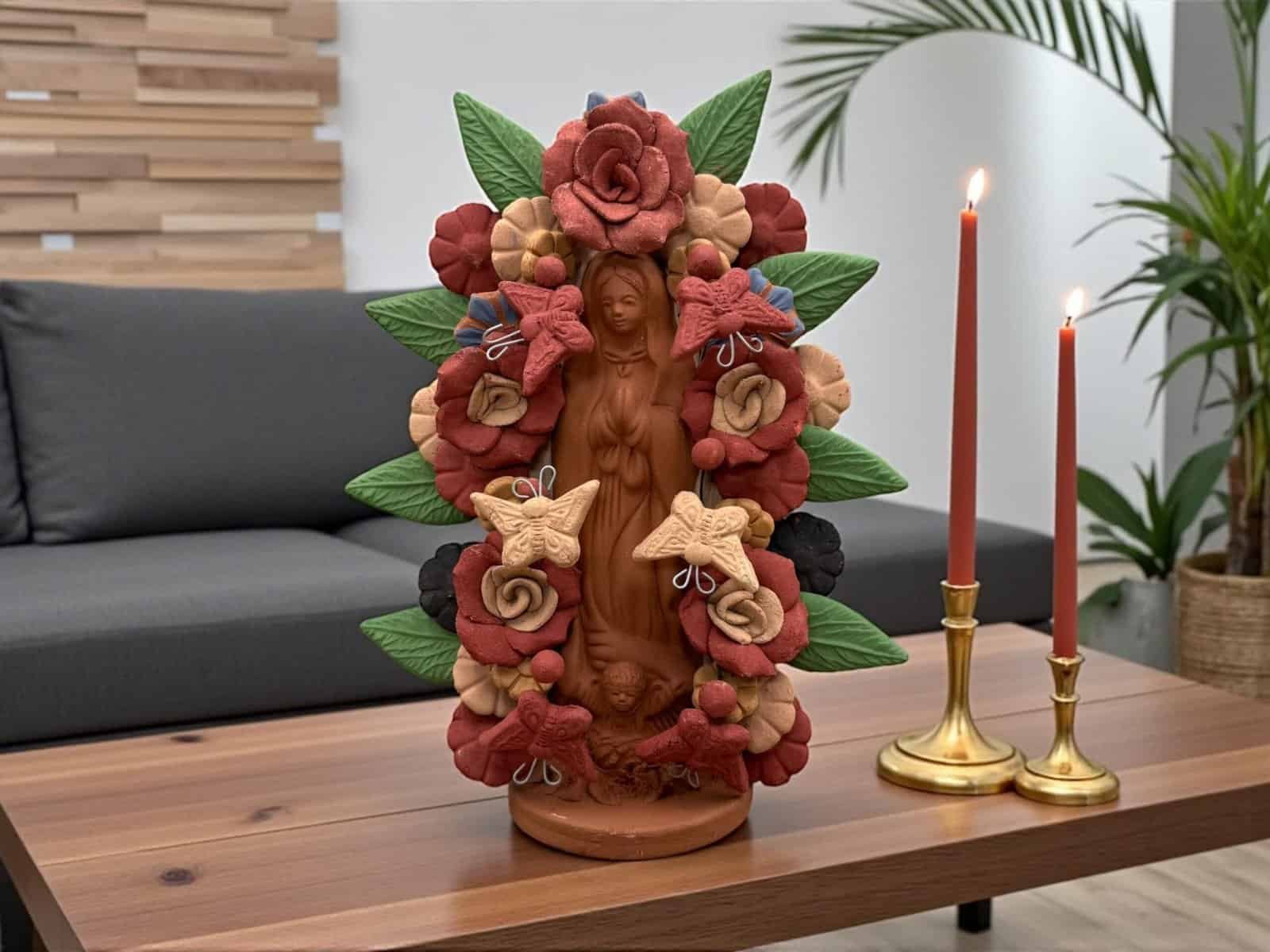 Virgin Mary Handmade Clay Piece, Virgen de Guadalupe Mexican Decoration, Mary Virgin Sculpture, Metepec Estado de México Virgencita