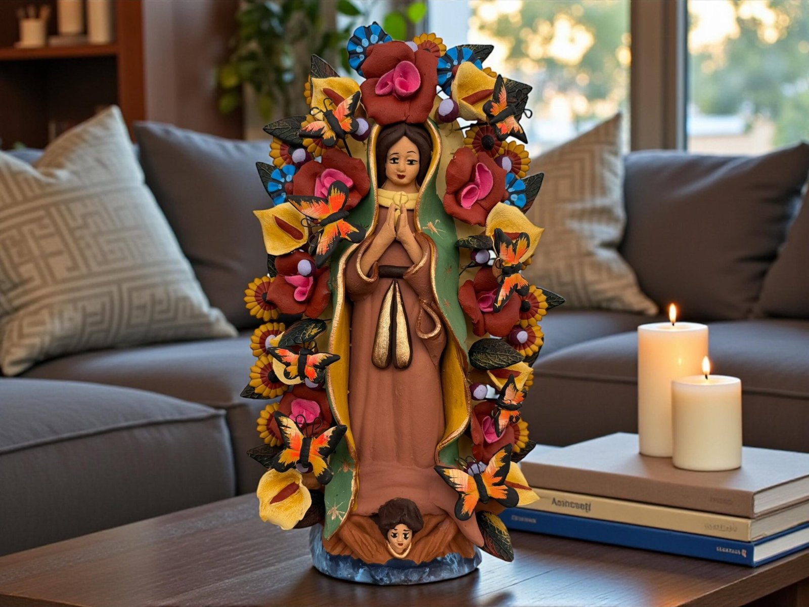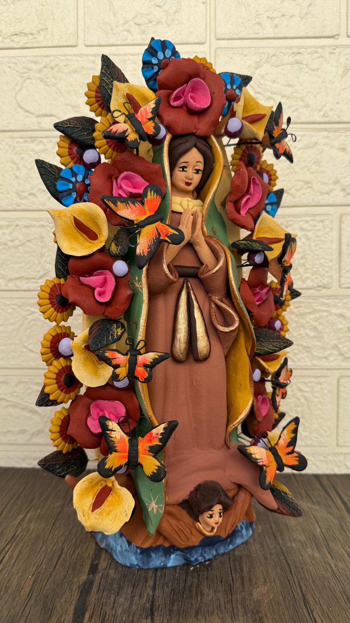 Virgin Mary Handmade Clay Piece, Virgen de Guadalupe Mexican Decoration, Mary Virgin Sculpture, Metepec Estado de México Virgencita