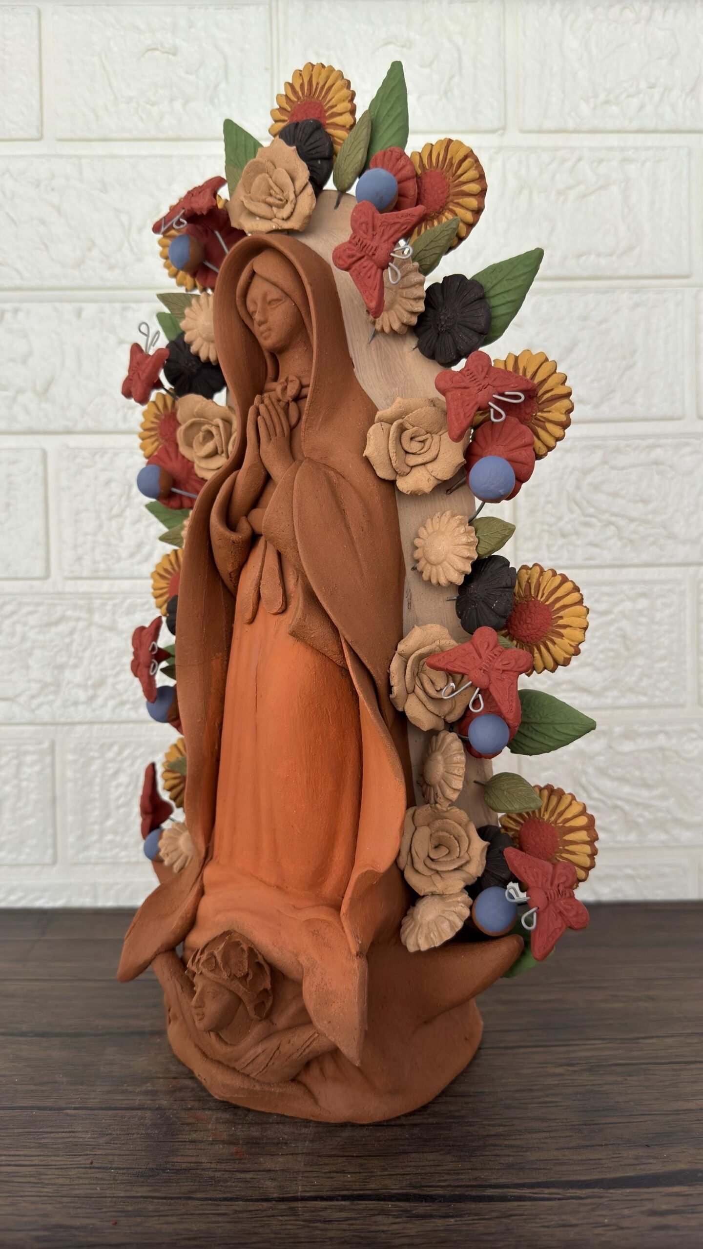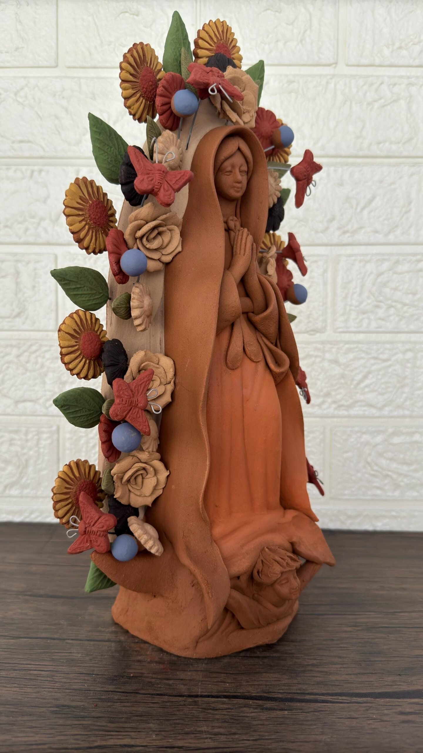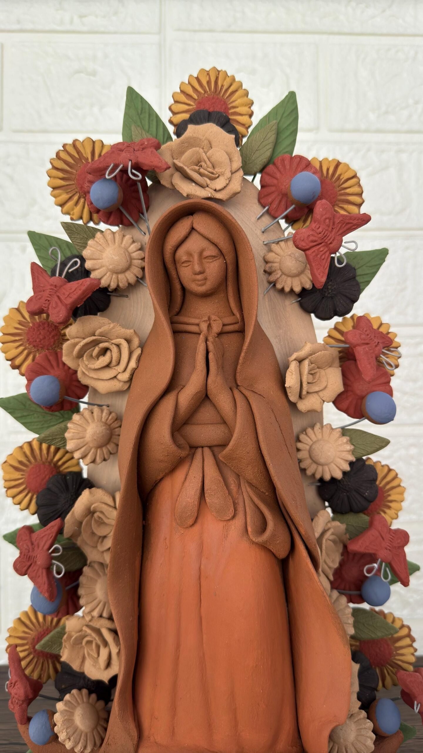 Virgin Mary Handmade Clay Piece, Virgen de Guadalupe Mexican Decoration, Mary Virgin Sculpture, Metepec Estado de México Virgencita