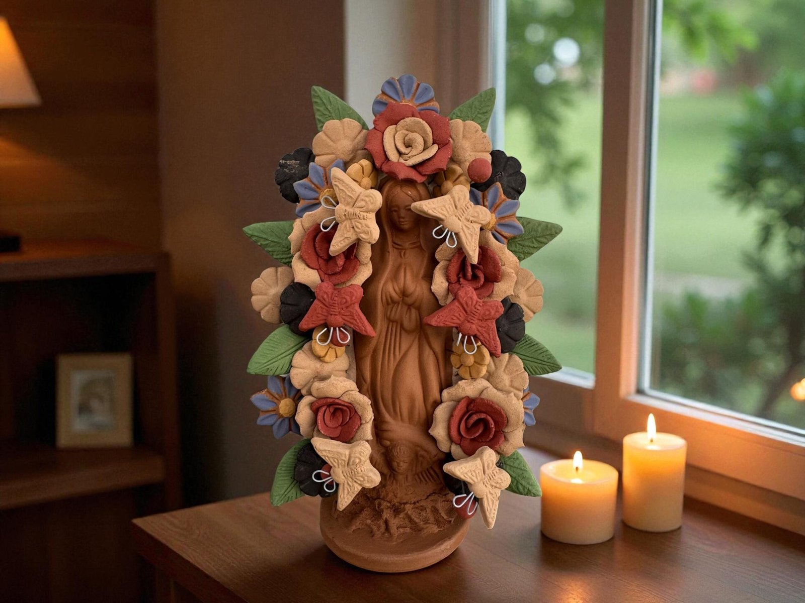 Virgin Mary Handmade Clay Piece, Virgen de Guadalupe Mexican Decoration, Mary Virgin Sculpture, Metepec Estado de México Virgencita