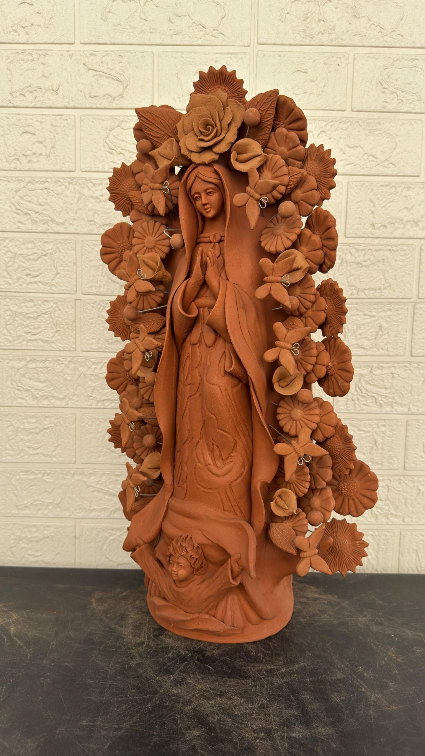 XL Large Virgin Mary clay pieces, Wall hanging ornaments, Mexican decoration, Mary Virgin 23.7” sculpture, Technique natural color