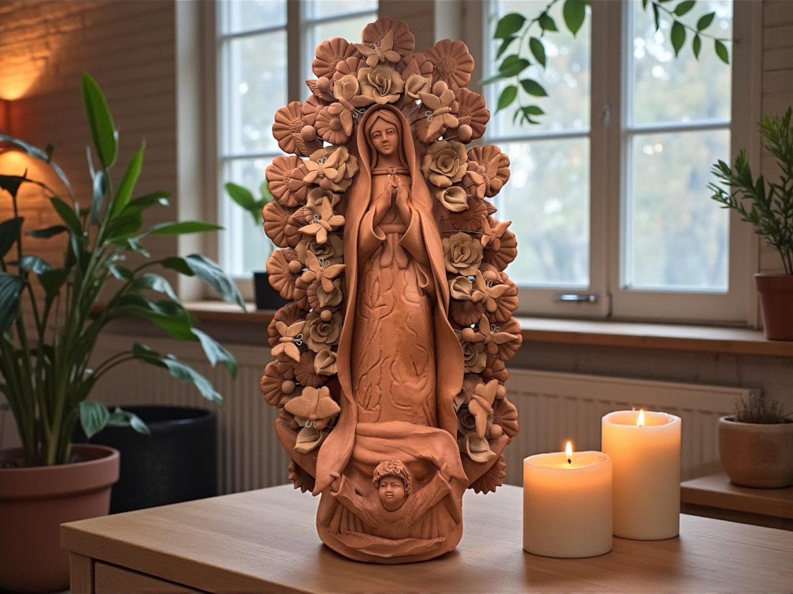 The “Mary Virgin made of clay in Michoacan” refers to a traditional craft known as “Virgen de la Inmaculada Concepción de Ocumicho” or “Virgin of the Immaculate Conception of Ocumicho.” Ocumicho is a village located in the state of Michoacán, Mexico, known for its unique pottery traditions.