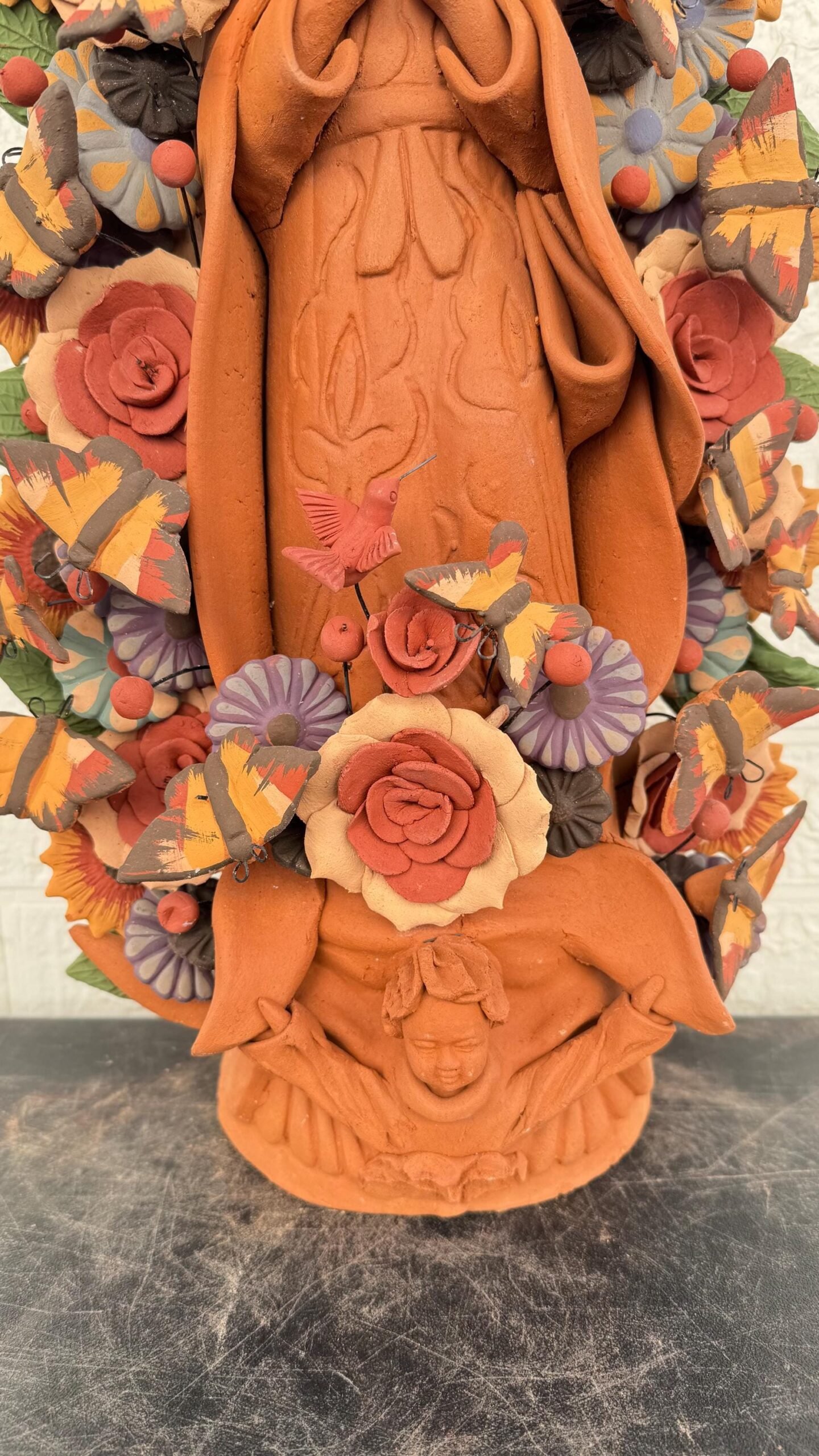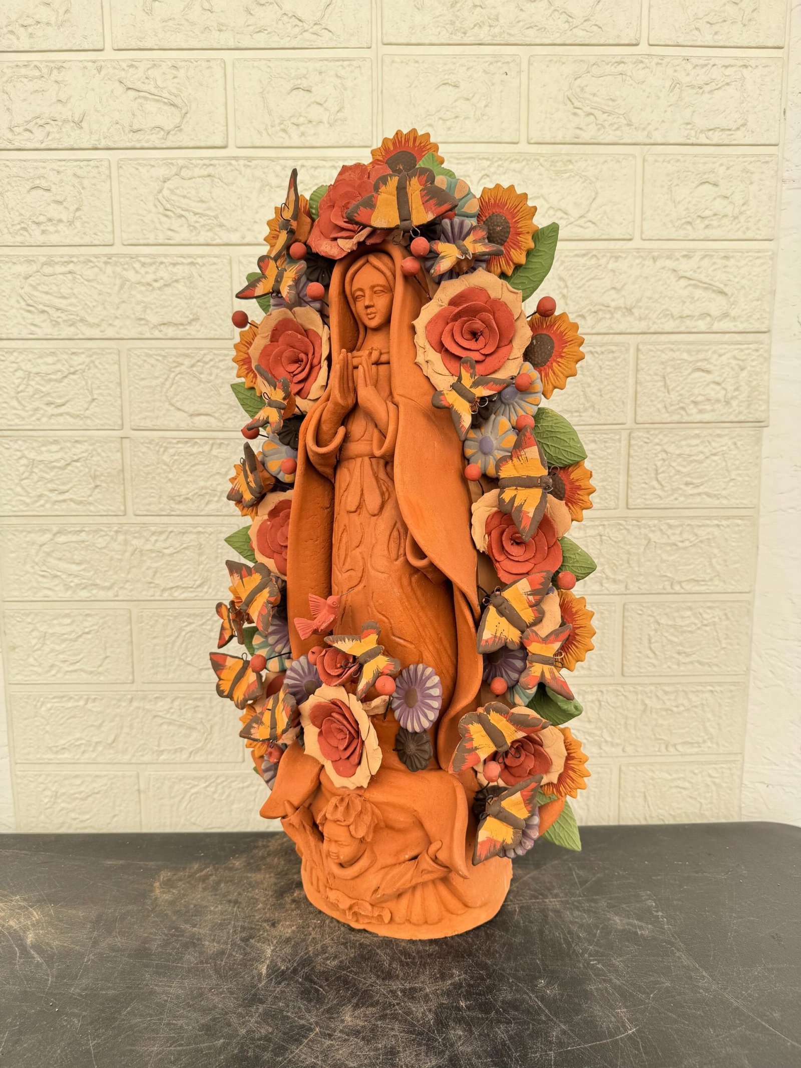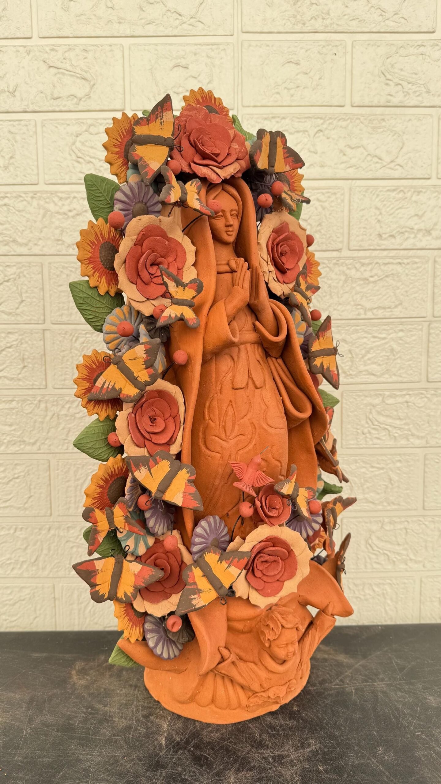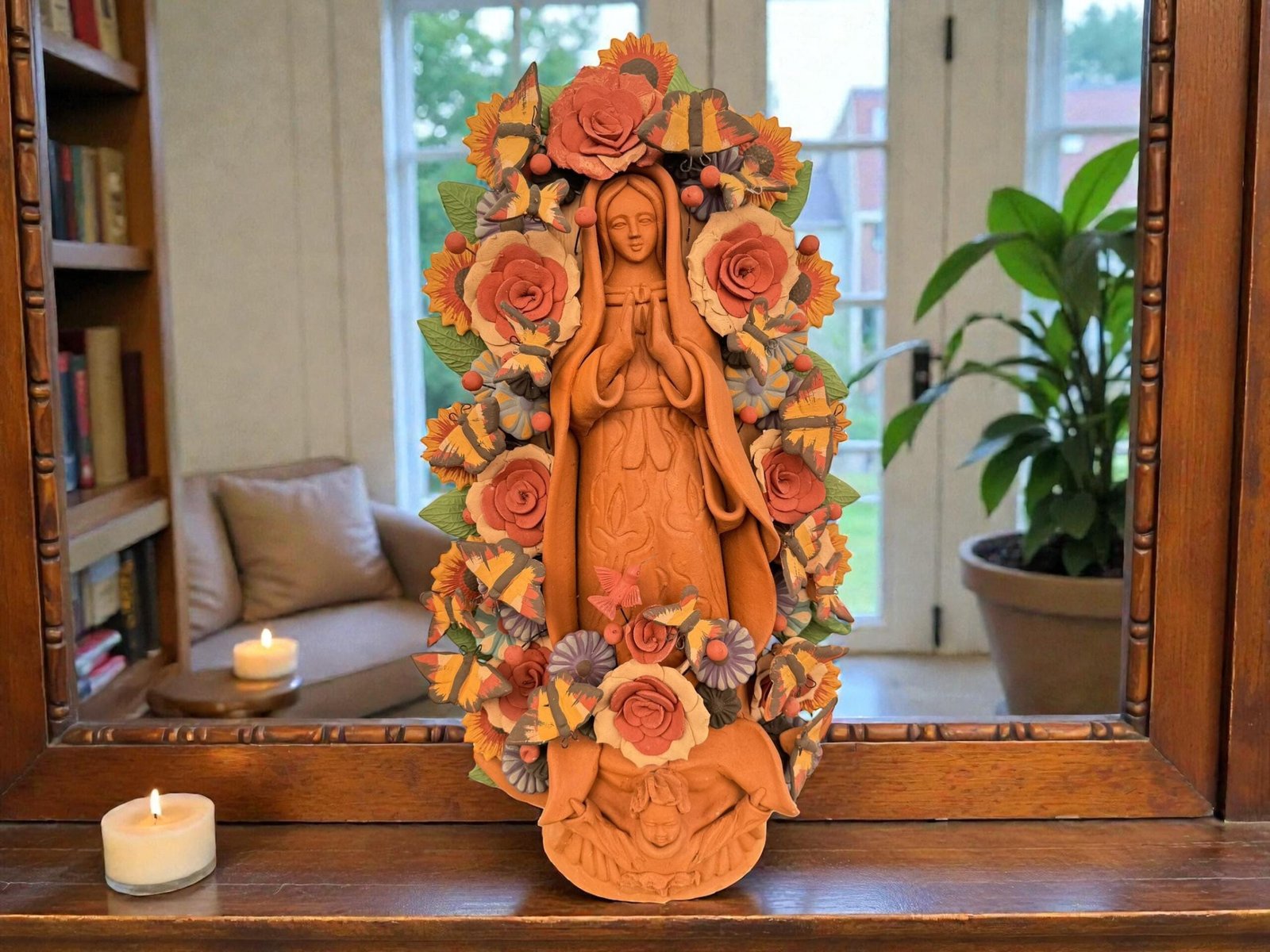 XL Virgin Mary Handmade Clay Piece, Virgen de Guadalupe Mexican Decoration, Mary Virgin Sculpture,Metepec Estado de México Virgencita 23.7”